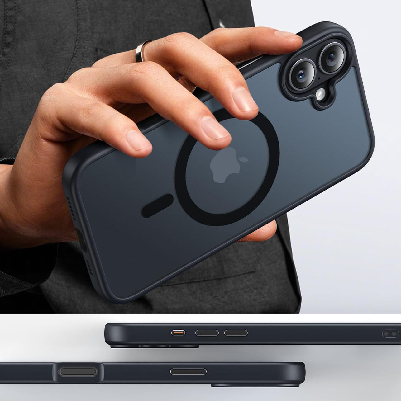 Ochronne etui składające się z dwóch materiałów: TPU (utwardzana guma) - ramka oraz twardego poliwęglanu, pokrytego warstwą antypoślizgową - matowe plecy. Zapewnia to świetną ochronę przy zachowaniu pełnej funkcjonalności. Etui umożliwia także współpracę z akcesoriami MAGSAFE.