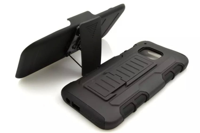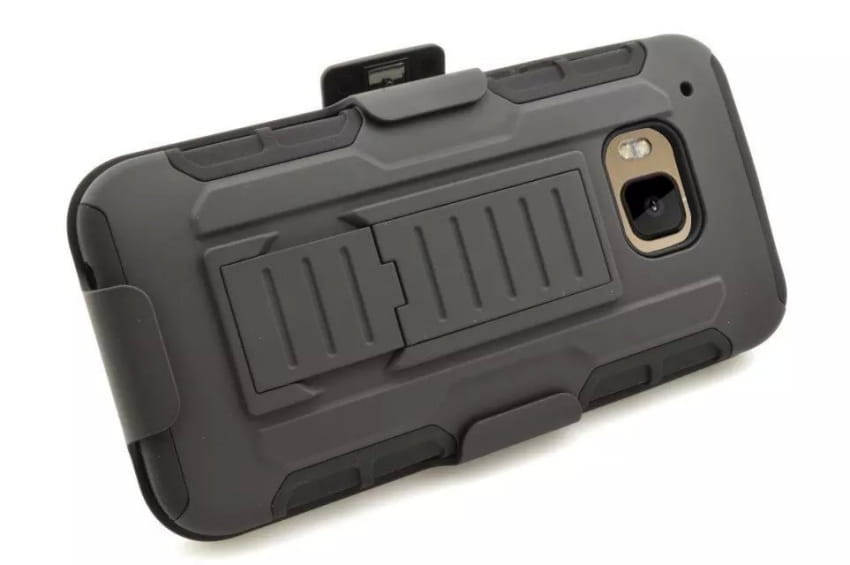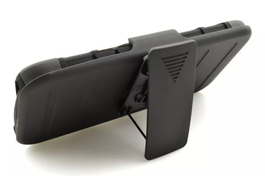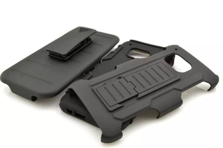Ochronne etui składające się z dwóch warstw: wewnętrznej wykonanej z TPU (utwardzana guma) oraz zewnętrznej wykonanej z twardego poliwęglanu, pokrytego warstwą antypoślizgową. Zapewnia to świetną ochronę przy zachowaniu pełnej funkcjonalności. W zestawie znajduje się kabura (holster) z obrotowym klipsem, zapewniającą również dodatkową ochronę dla ekranu.
