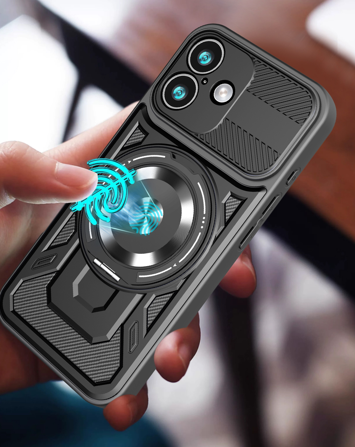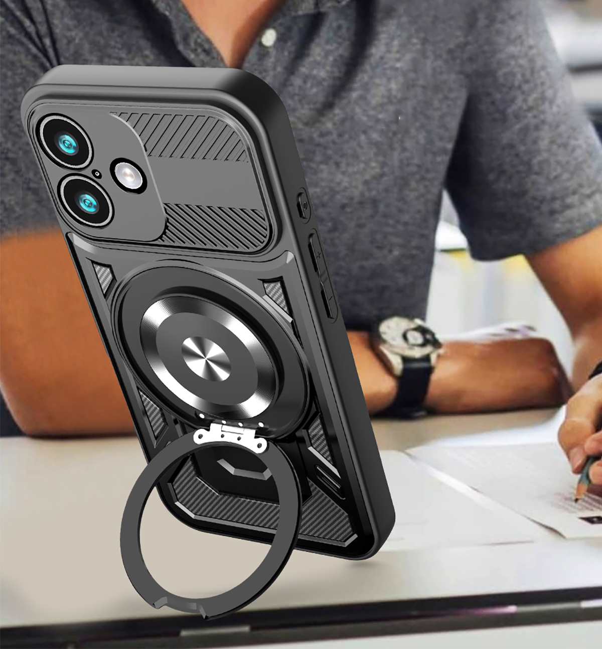 - Duży otwierany RING kompatybilny z uchwytami MAGSAFE, który może służyć jako podstawka.