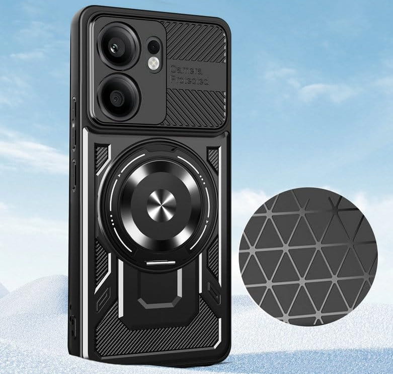 - Duży otwierany RING kompatybilny z uchwytami MAGSAFE, który może służyć jako podstawka.