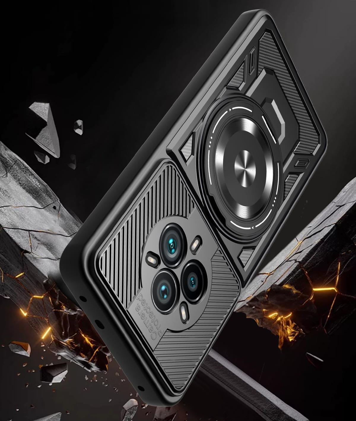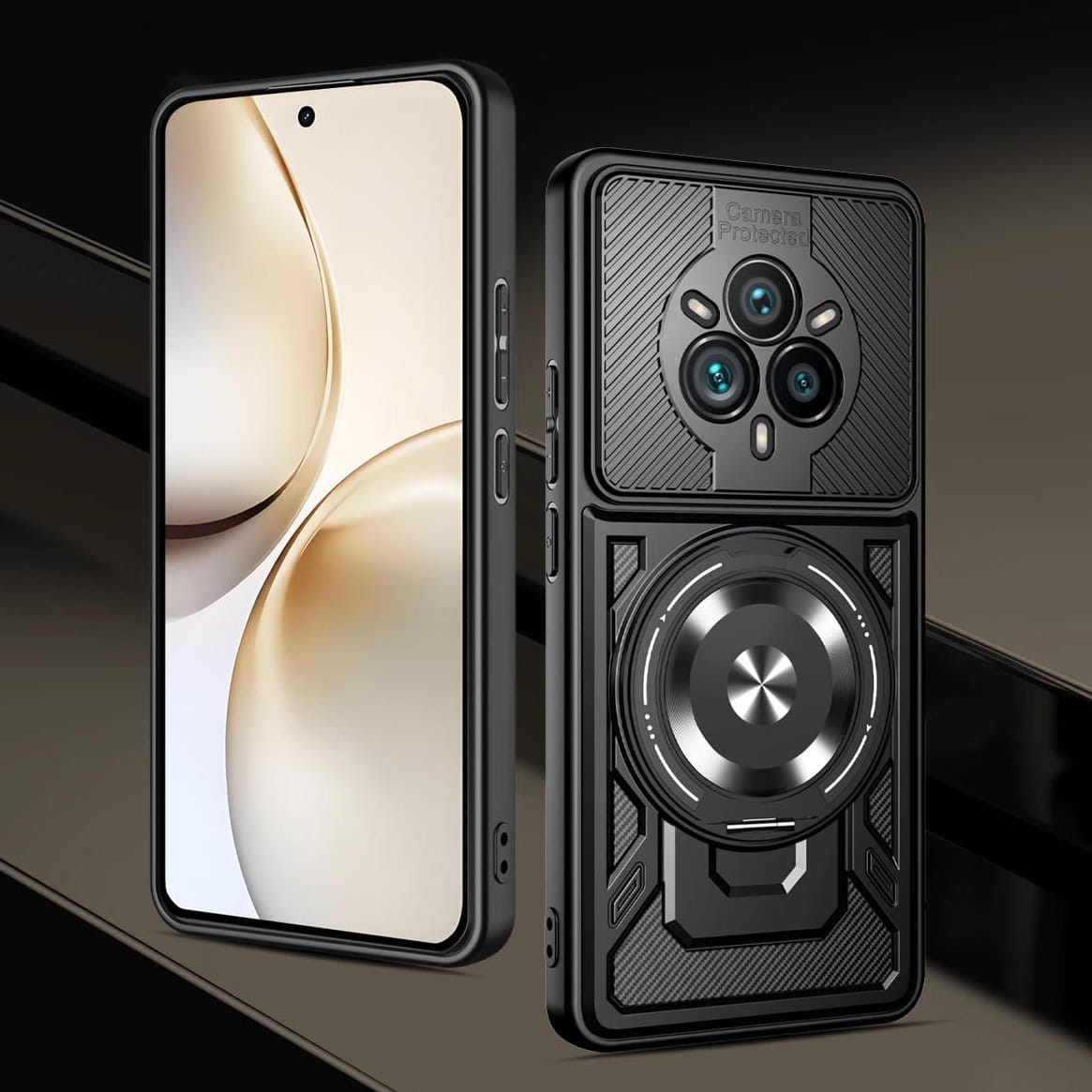 - Duży otwierany RING kompatybilny z uchwytami MAGSAFE, który może służyć jako podstawka.