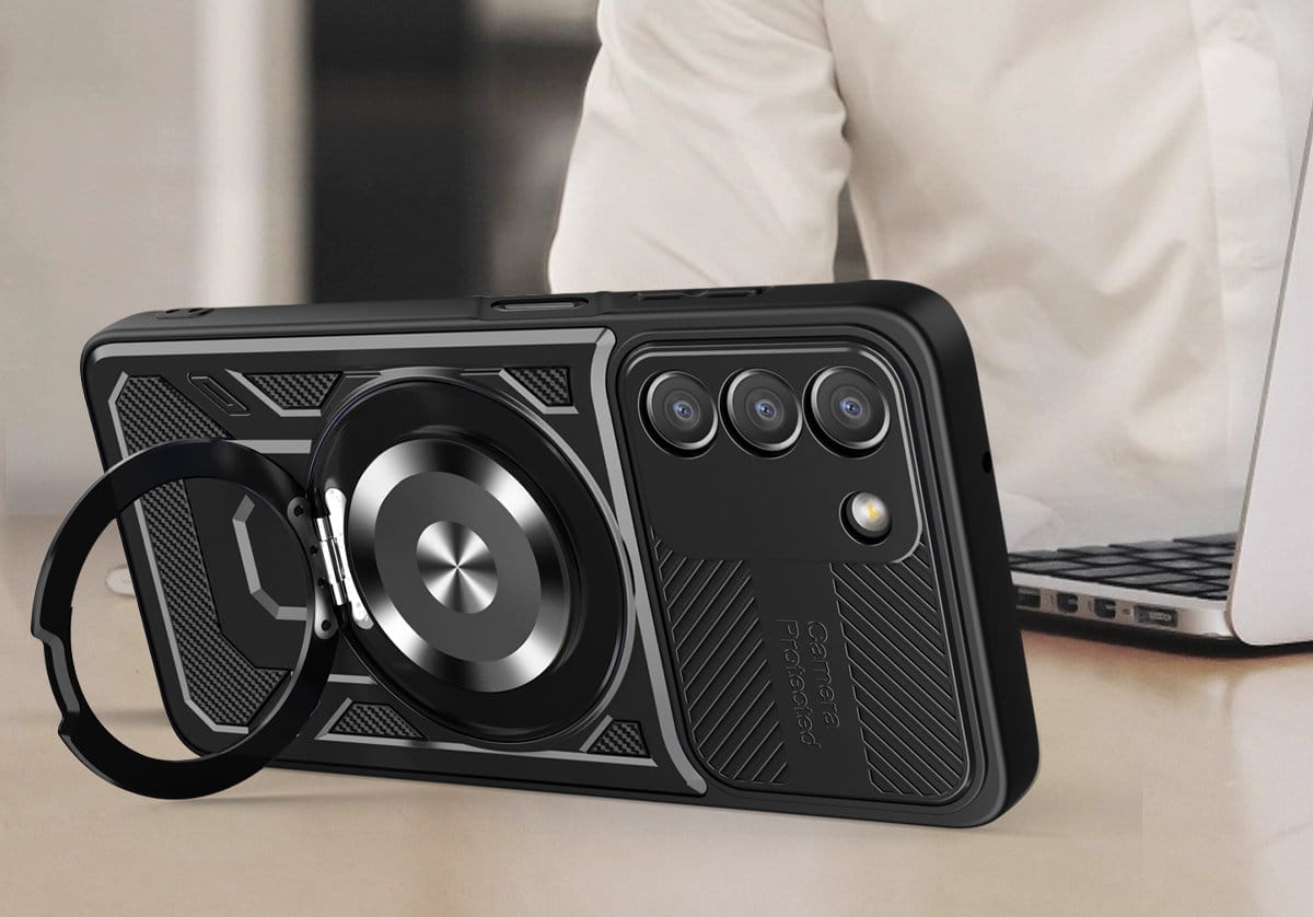 - Duży otwierany RING kompatybilny z uchwytami MAGSAFE, który może służyć jako podstawka.
