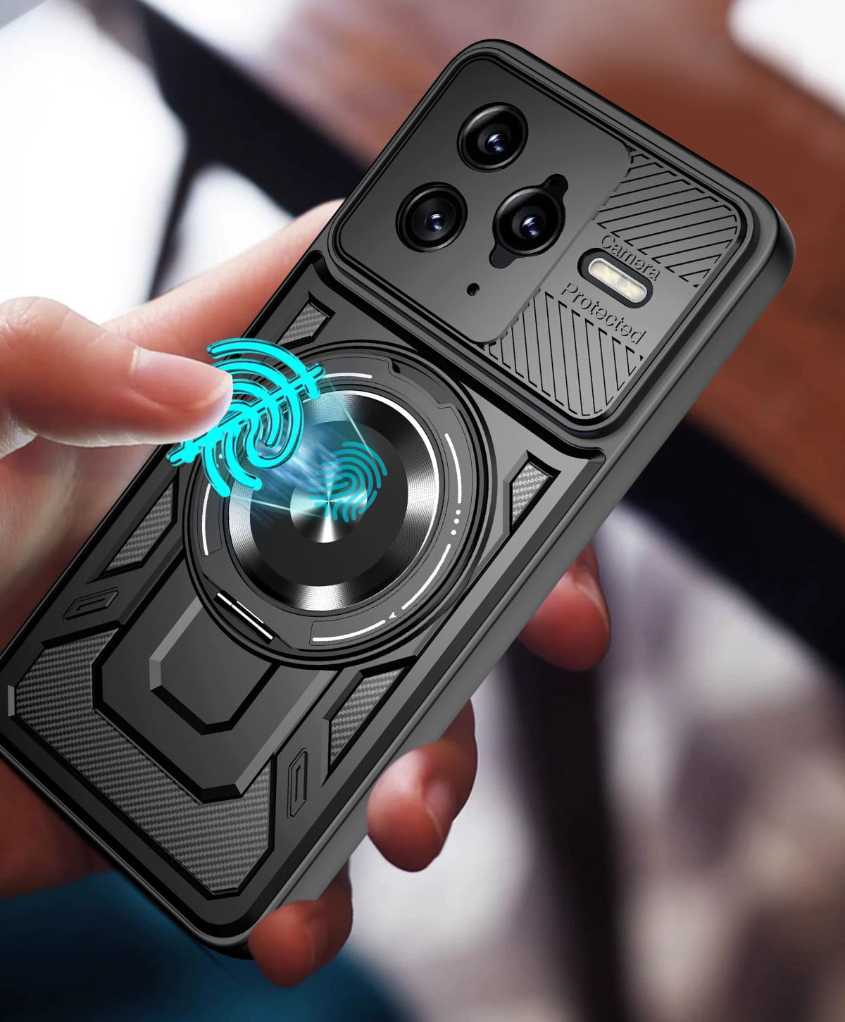 - Duży otwierany RING kompatybilny z uchwytami MAGSAFE, który może służyć jako podstawka.