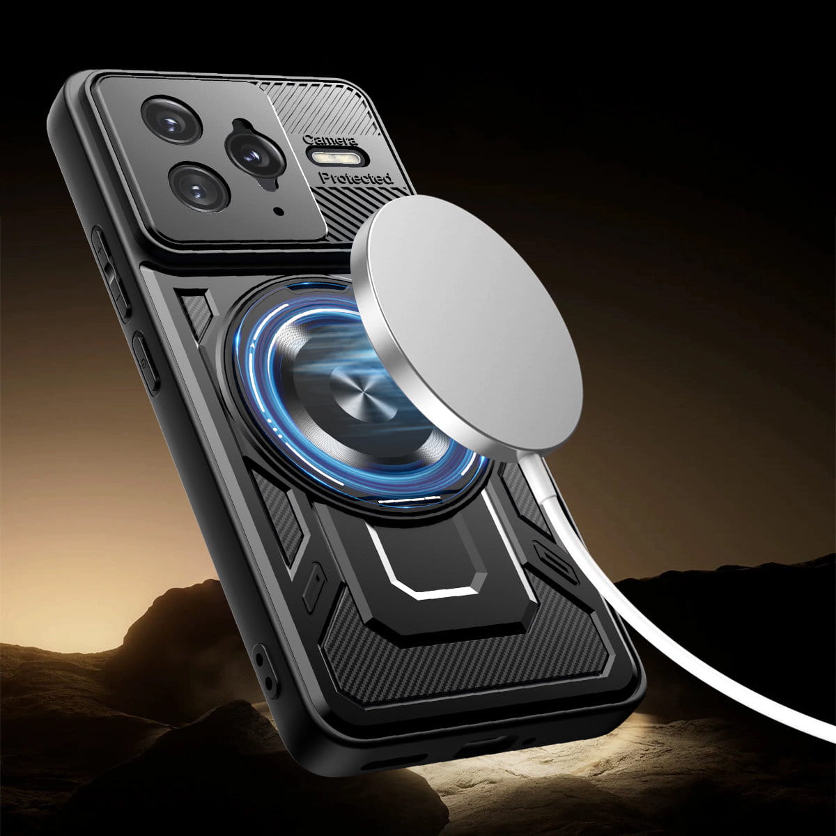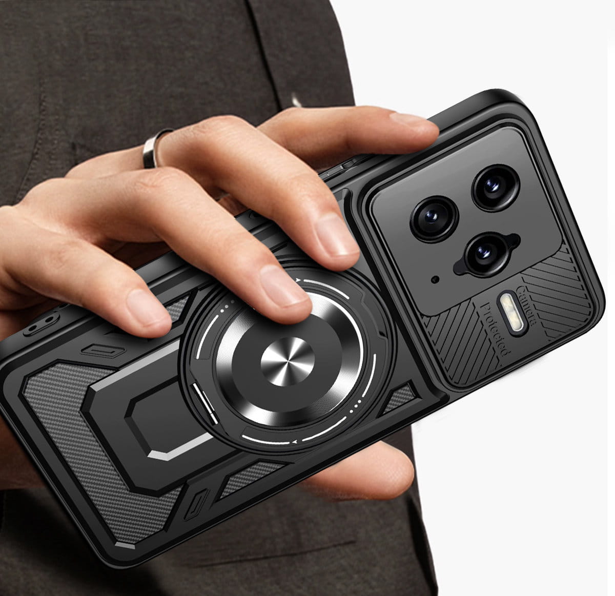 - Duży otwierany RING kompatybilny z uchwytami MAGSAFE, który może służyć jako podstawka.