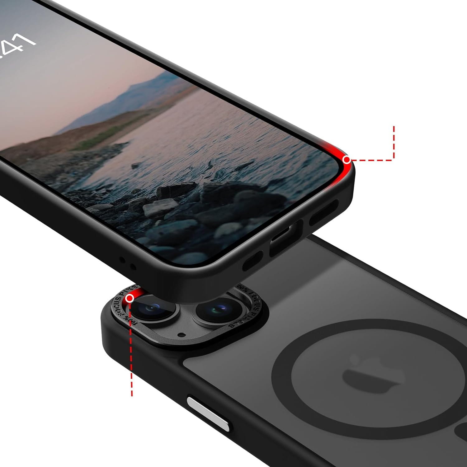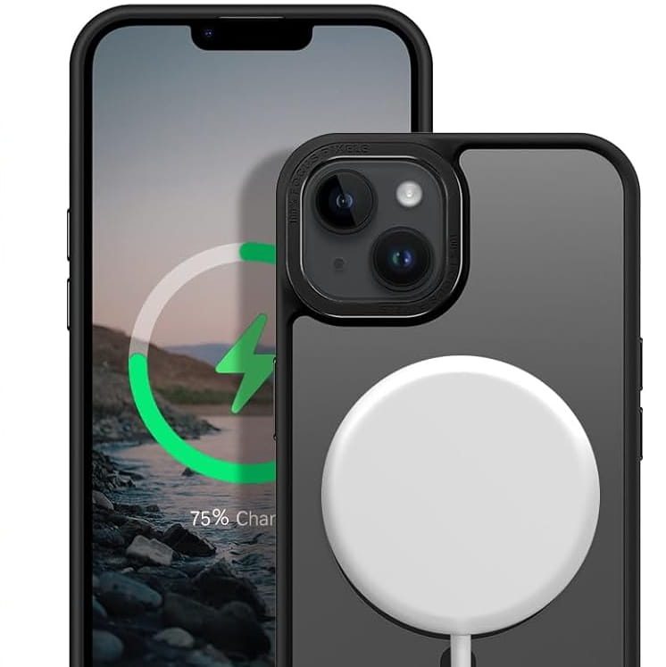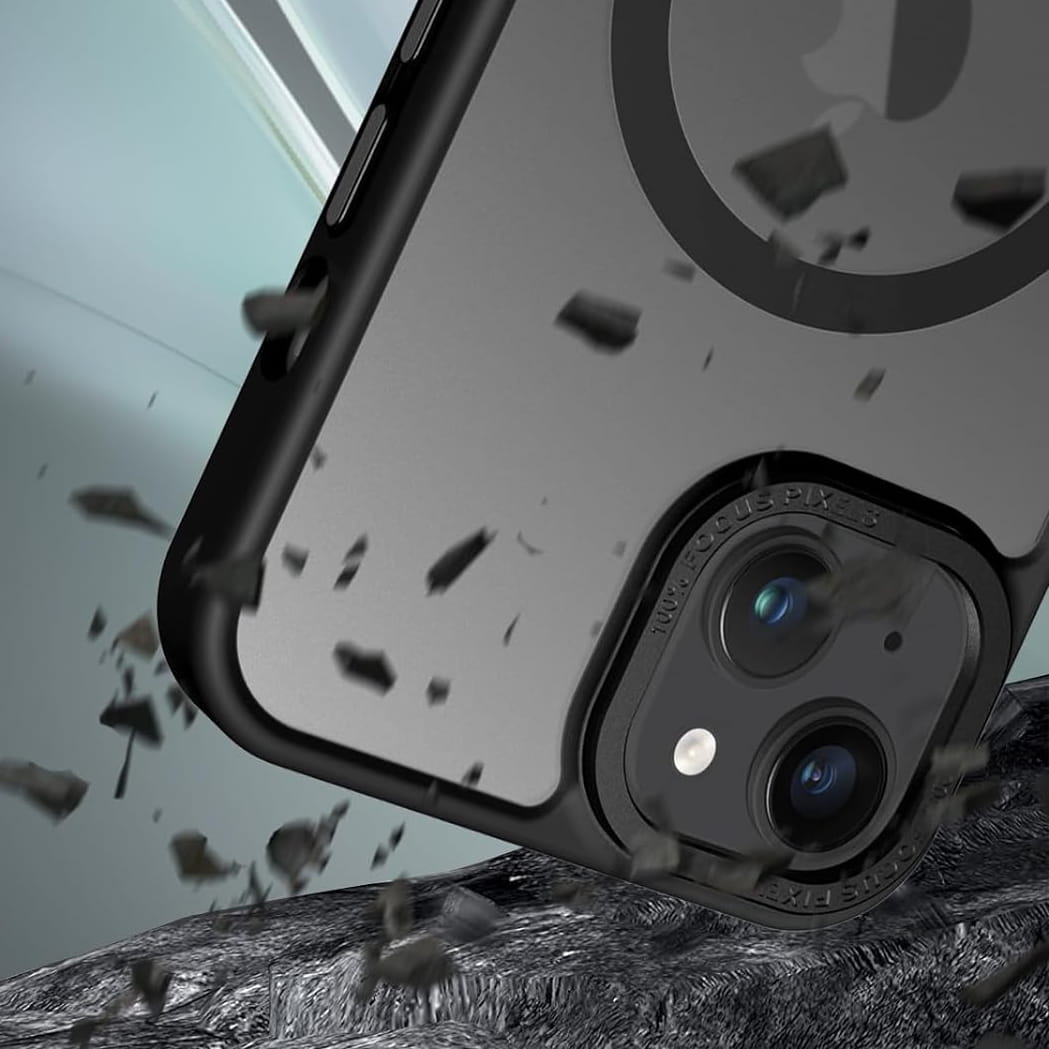Ochronne etui składające się z dwóch materiałów: TPU (utwardzana guma) - ramka oraz twardego poliwęglanu, pokrytego warstwą antypoślizgową - matowe plecy. Zapewnia to świetną ochronę przy zachowaniu pełnej funkcjonalności. Etui umożliwia także współpracę z akcesoriami MAGSAFE.