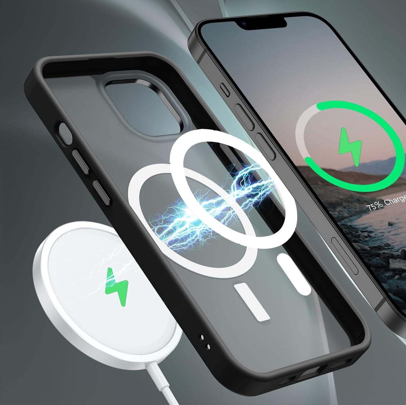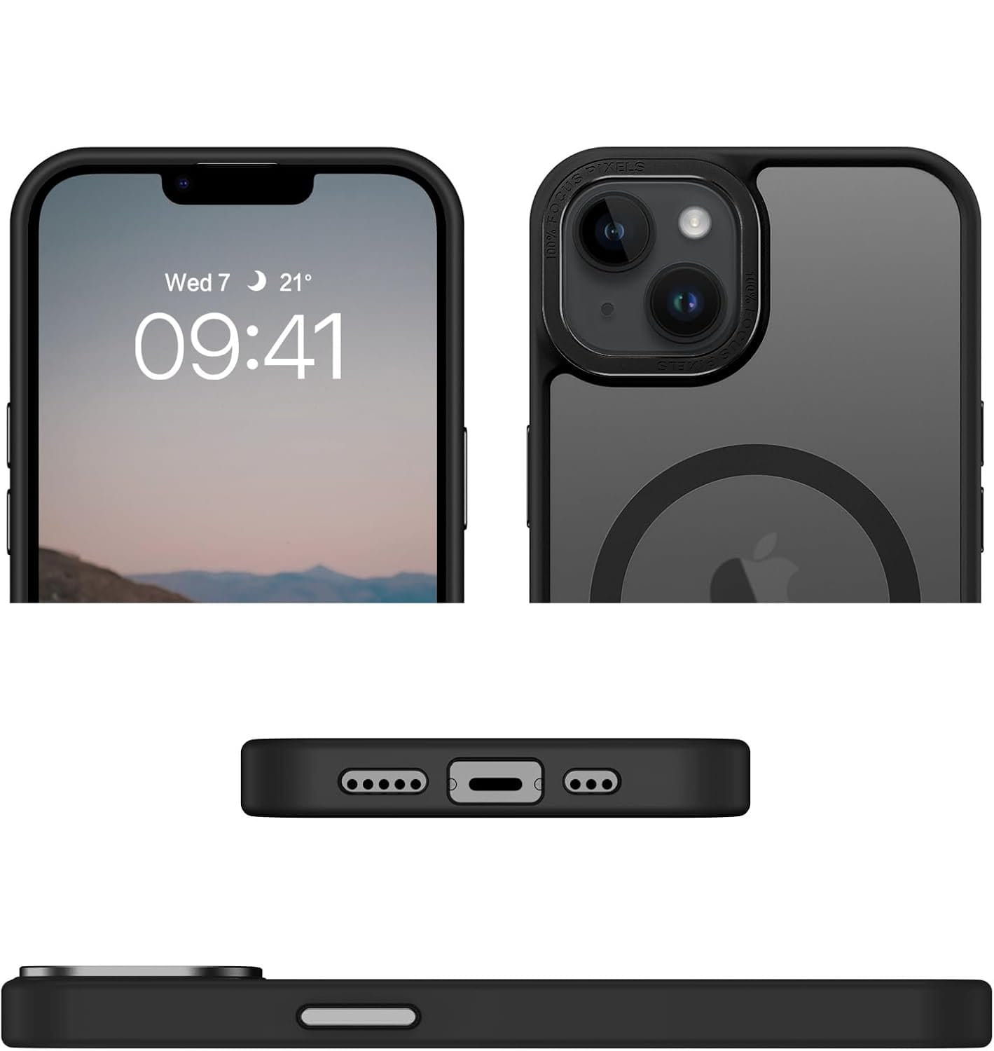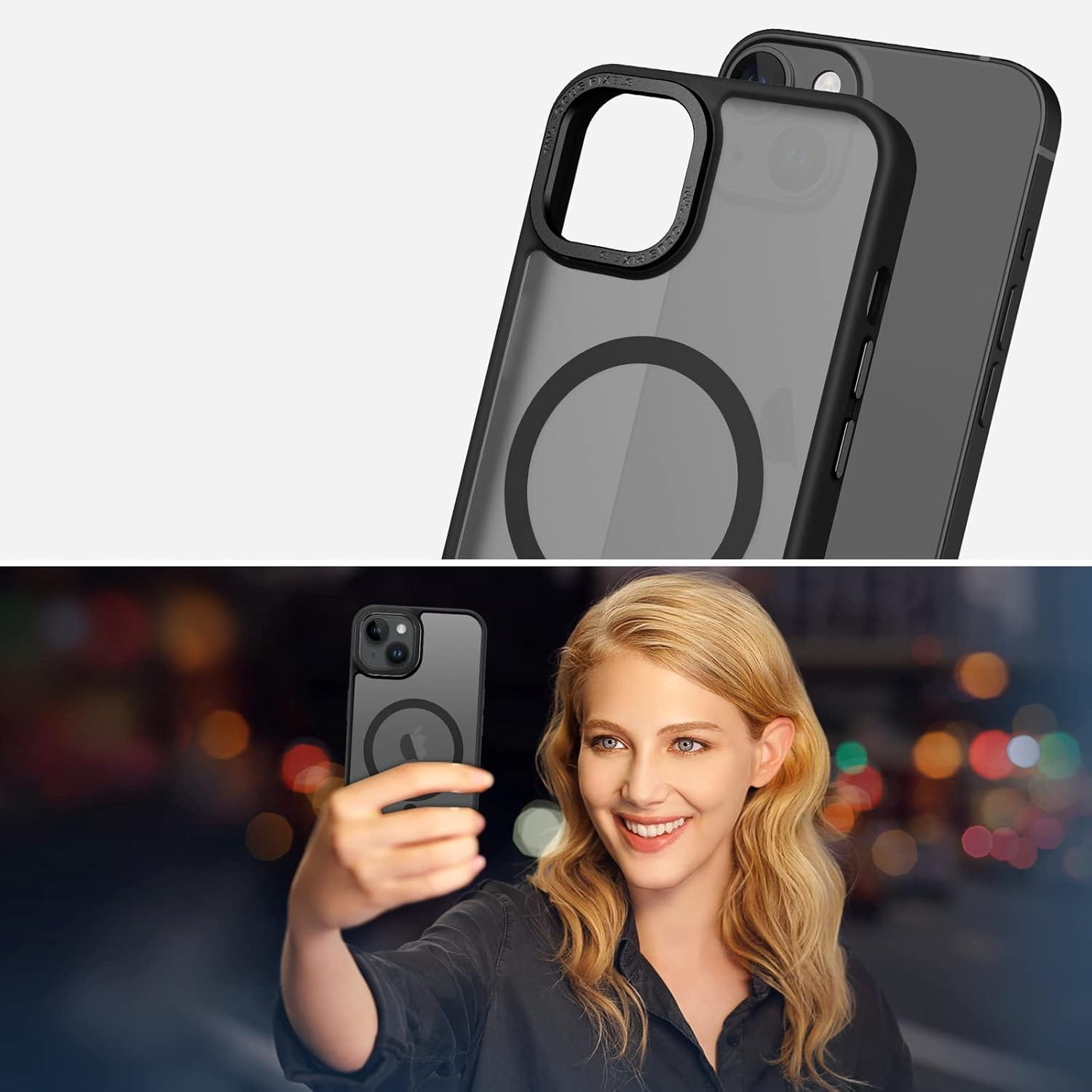 Ochronne etui składające się z dwóch materiałów: TPU (utwardzana guma) - ramka oraz twardego poliwęglanu, pokrytego warstwą antypoślizgową - matowe plecy. Zapewnia to świetną ochronę przy zachowaniu pełnej funkcjonalności. Etui umożliwia także współpracę z akcesoriami MAGSAFE.