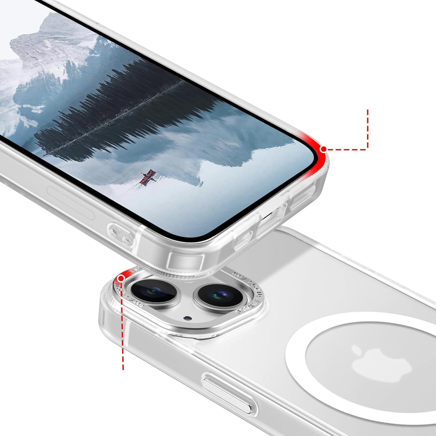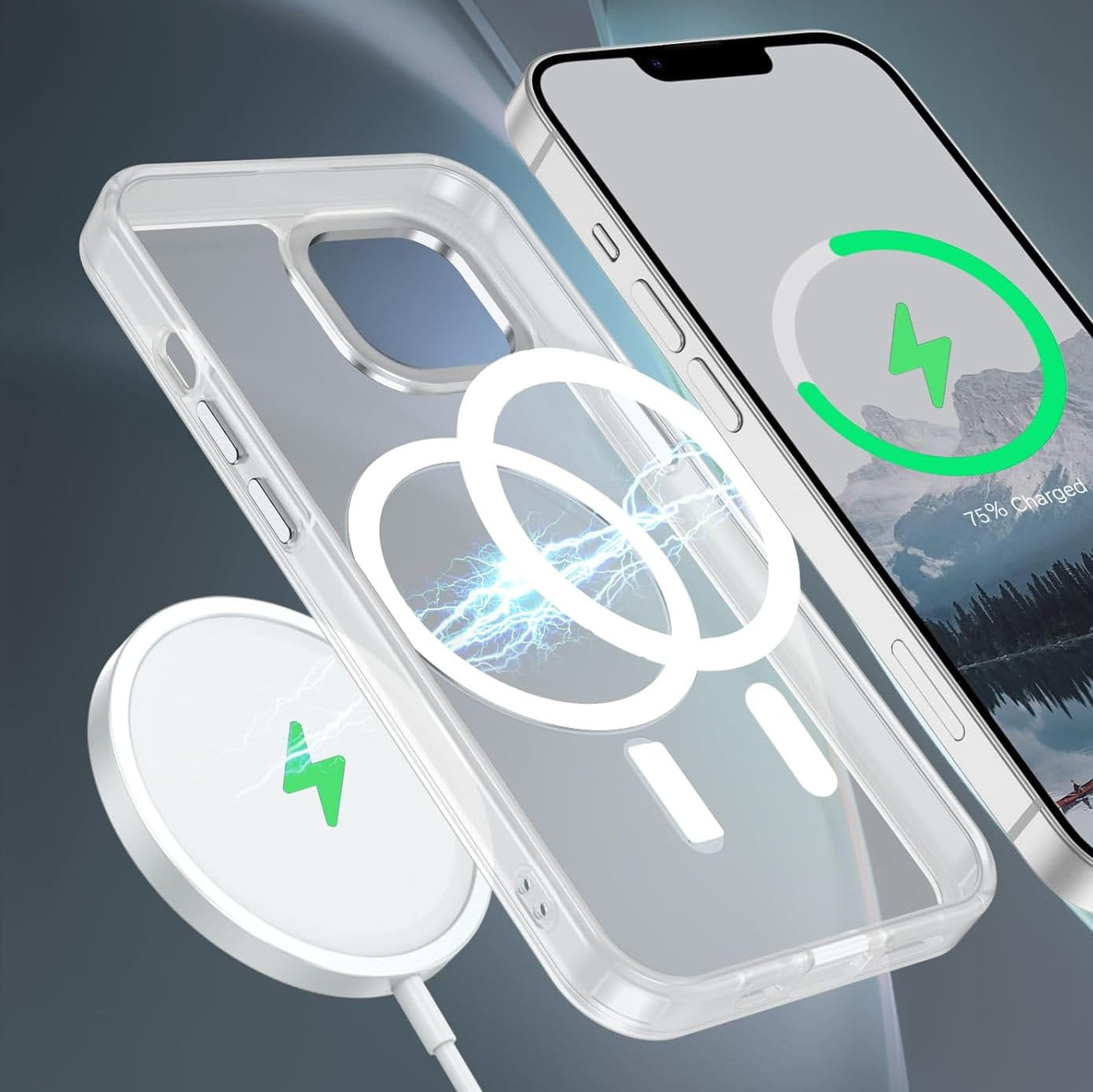 Ochronne etui składające się z dwóch materiałów: TPU (utwardzana guma) - ramka oraz twardego poliwęglanu, pokrytego warstwą antypoślizgową - matowe plecy. Zapewnia to świetną ochronę przy zachowaniu pełnej funkcjonalności. Etui umożliwia także współpracę z akcesoriami MAGSAFE.