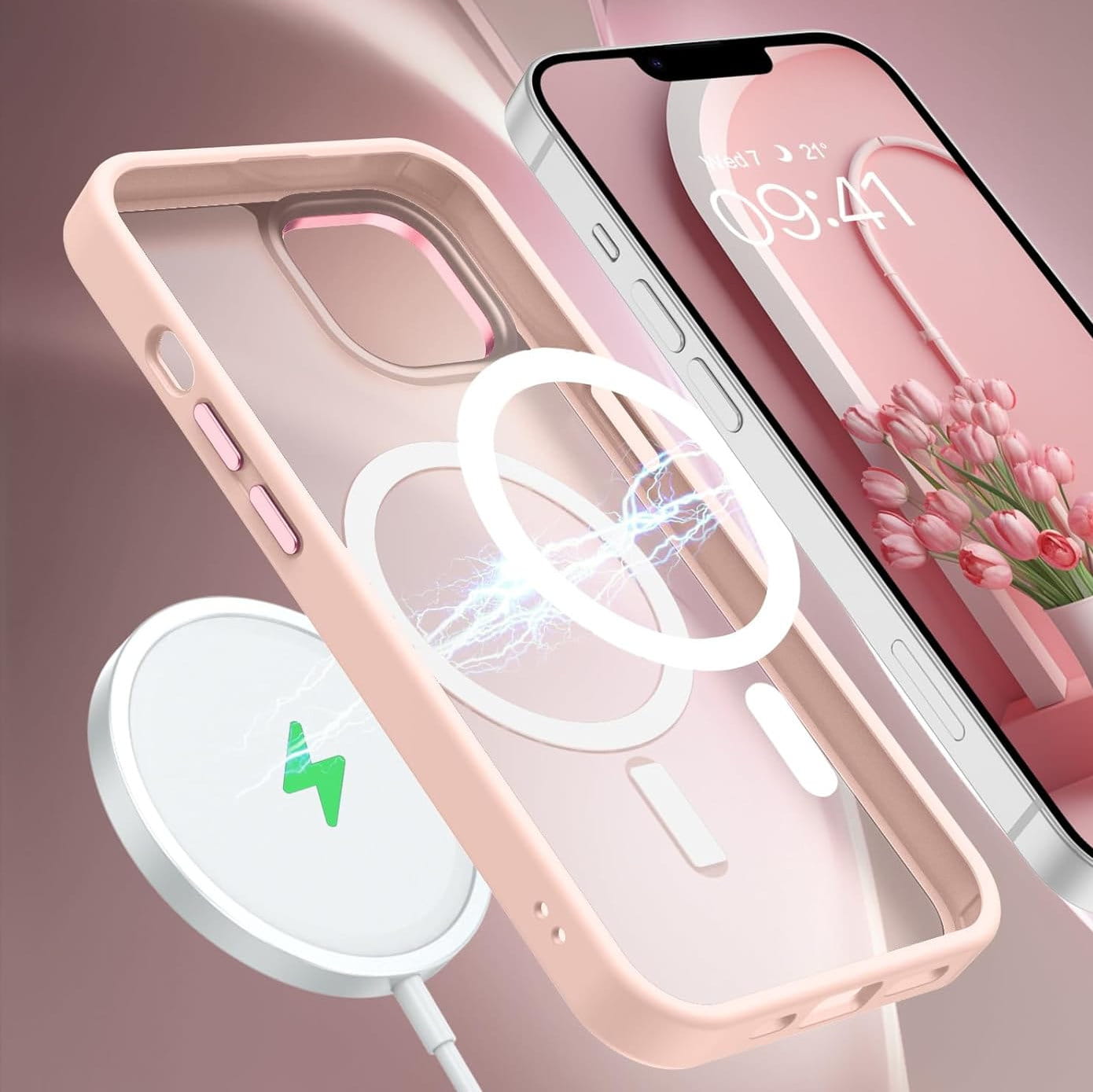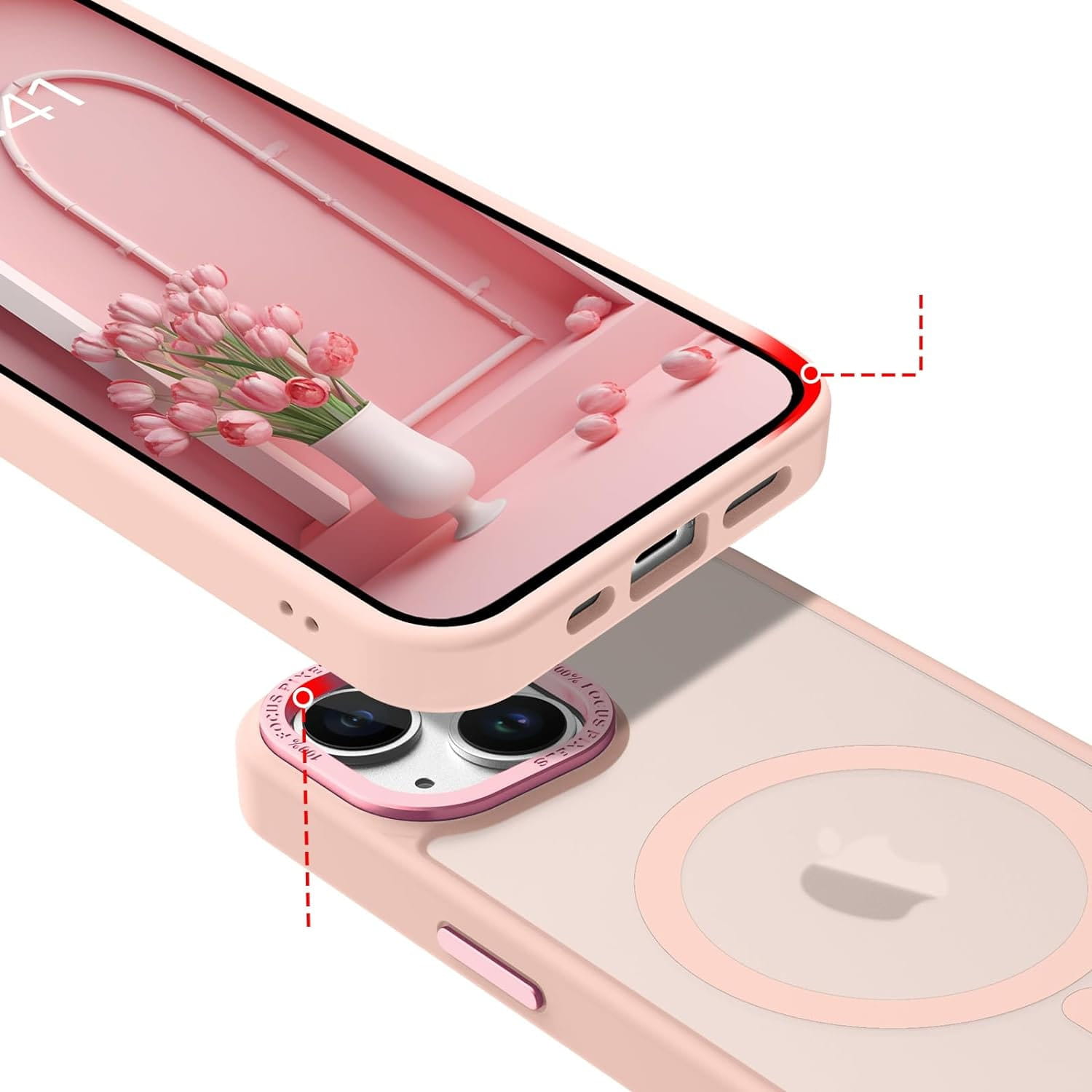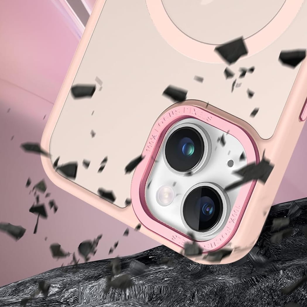 Ochronne etui składające się z dwóch materiałów: TPU (utwardzana guma) - ramka oraz twardego poliwęglanu, pokrytego warstwą antypoślizgową - matowe plecy. Zapewnia to świetną ochronę przy zachowaniu pełnej funkcjonalności. Etui umożliwia także współpracę z akcesoriami MAGSAFE.