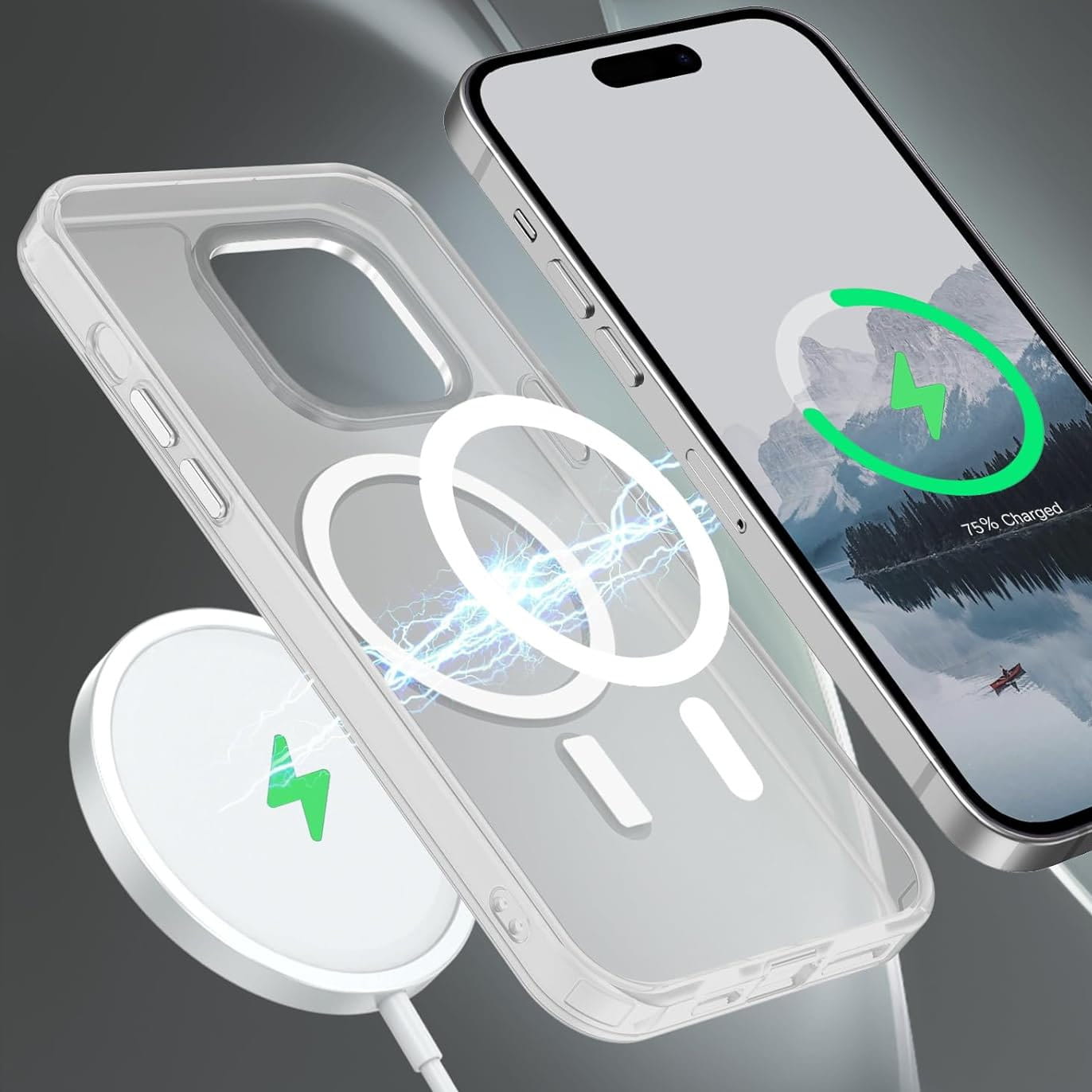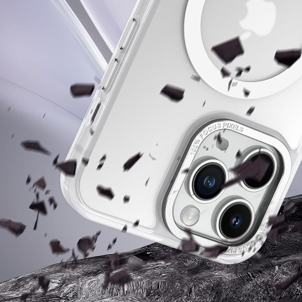 Ochronne etui składające się z dwóch materiałów: TPU (utwardzana guma) - ramka oraz twardego poliwęglanu, pokrytego warstwą antypoślizgową - matowe plecy. Zapewnia to świetną ochronę przy zachowaniu pełnej funkcjonalności. Etui umożliwia także współpracę z akcesoriami MAGSAFE.