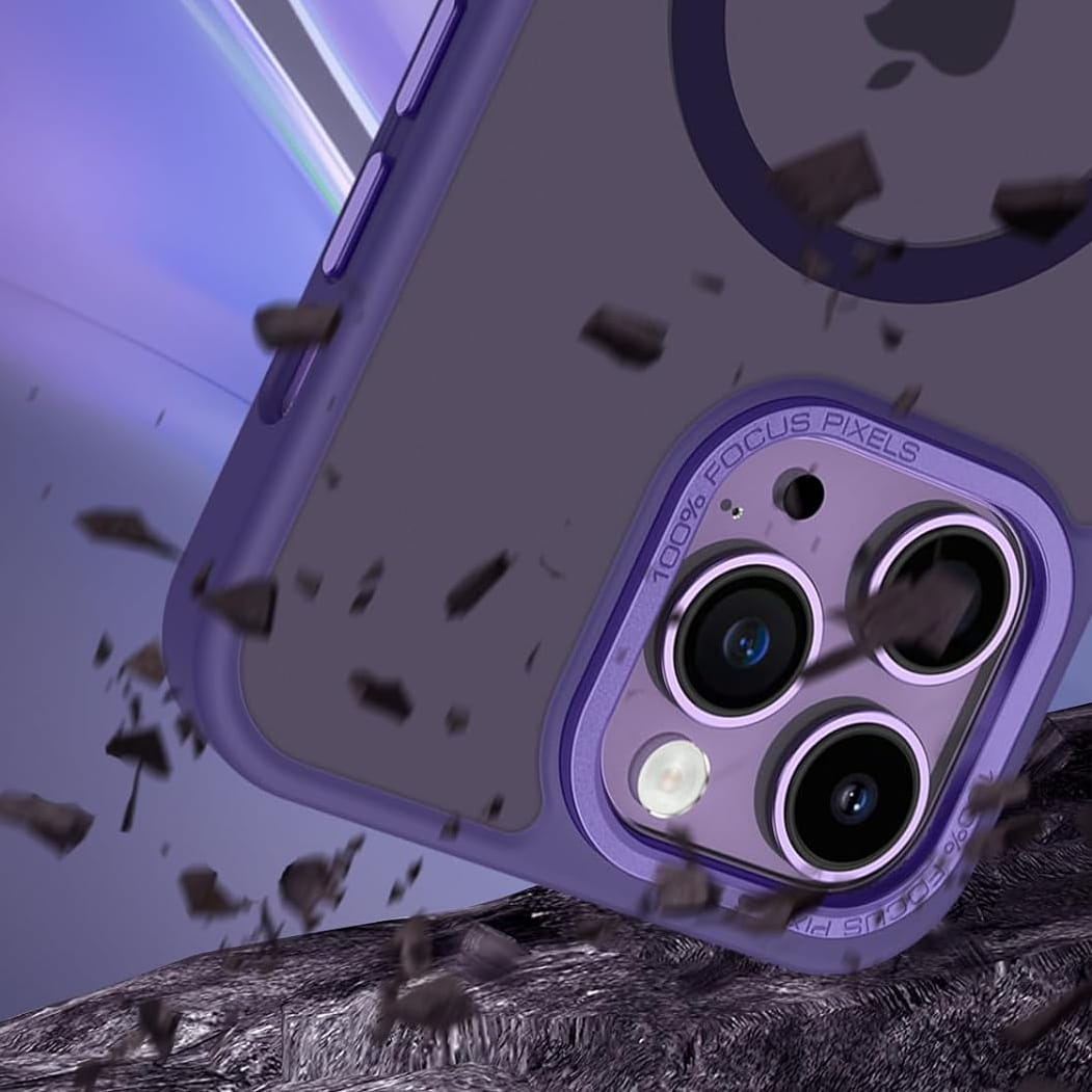 Ochronne etui składające się z dwóch materiałów: TPU (utwardzana guma) - ramka oraz twardego poliwęglanu, pokrytego warstwą antypoślizgową - matowe plecy. Zapewnia to świetną ochronę przy zachowaniu pełnej funkcjonalności. Etui umożliwia także współpracę z akcesoriami MAGSAFE.