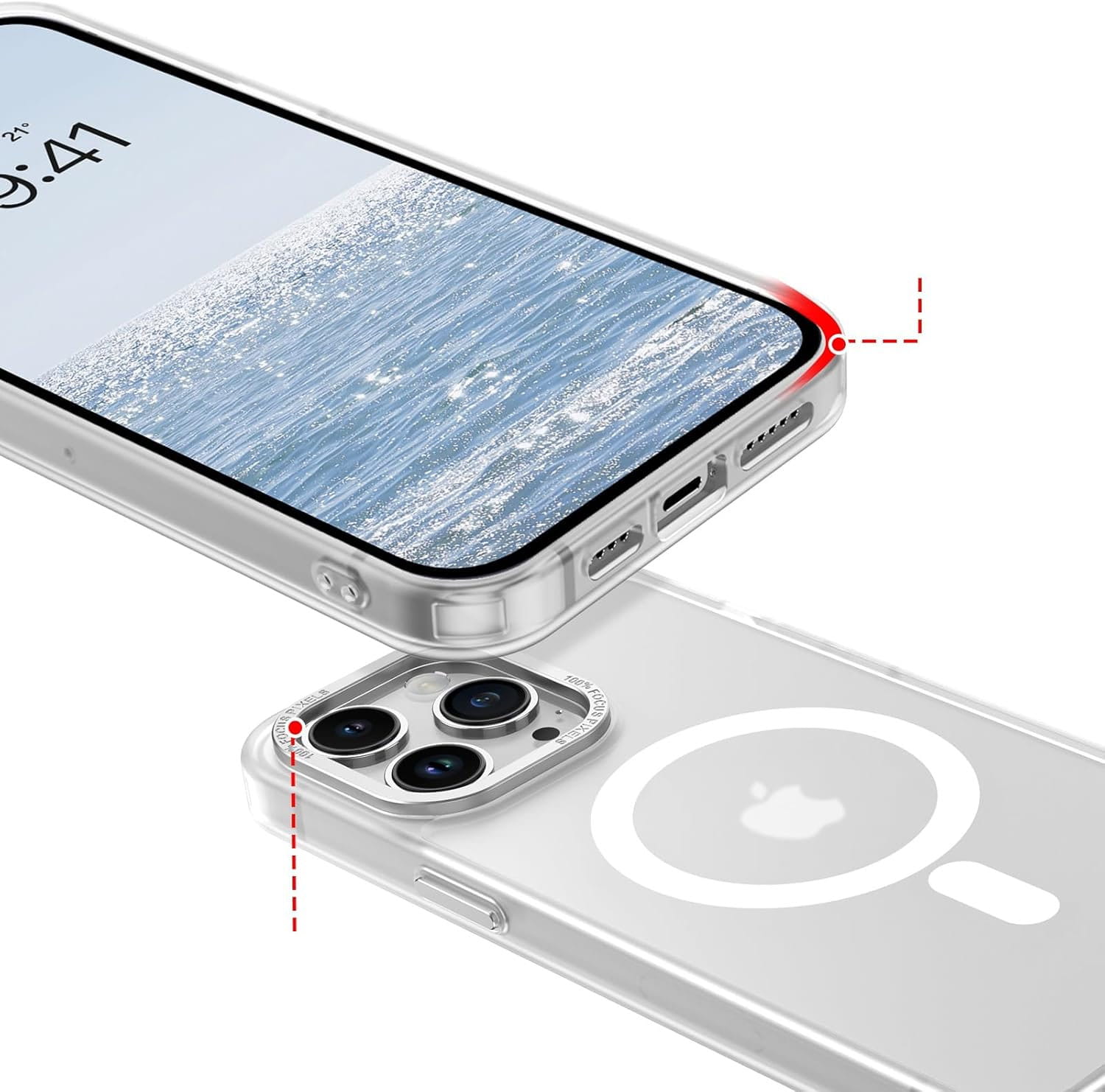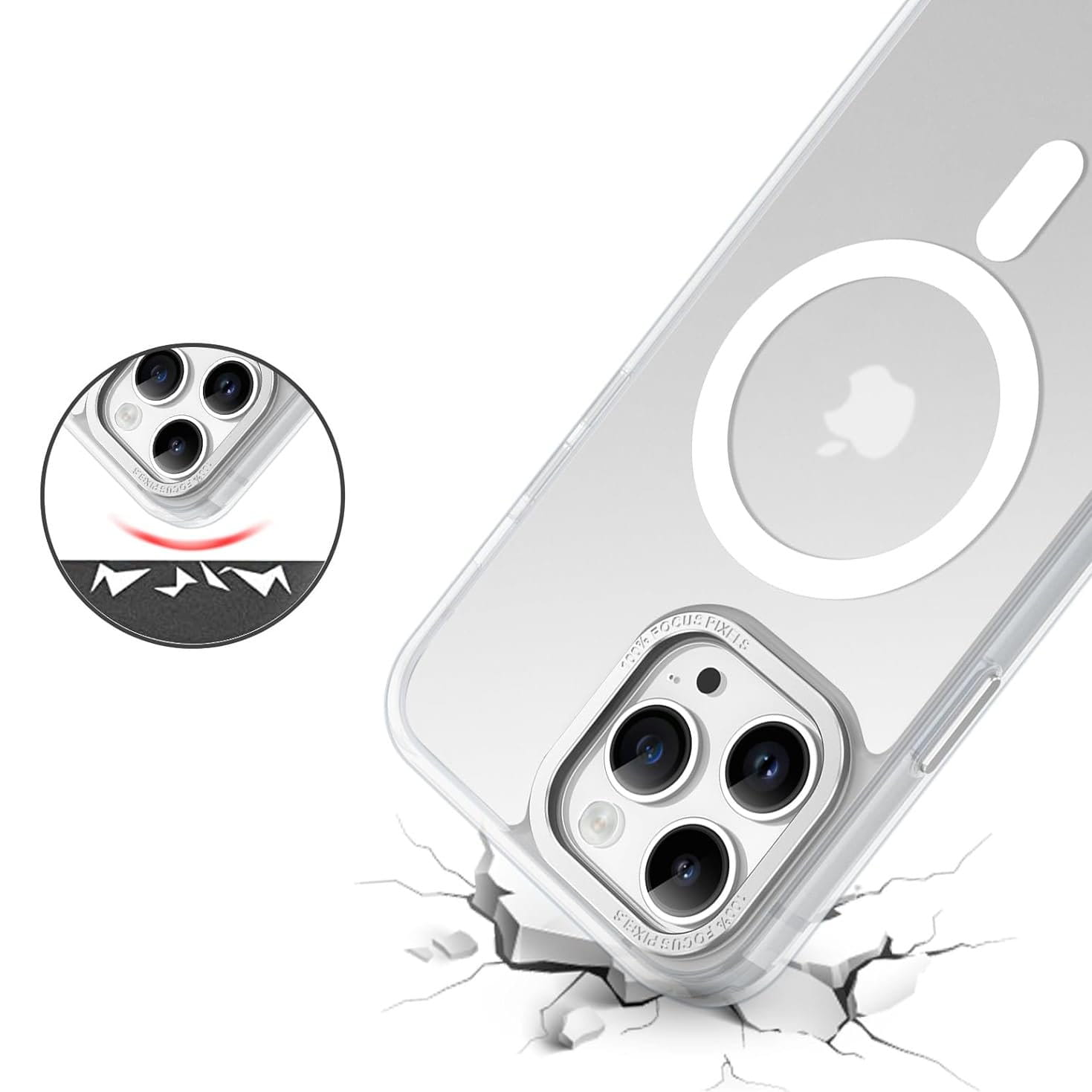 Ochronne etui składające się z dwóch materiałów: TPU (utwardzana guma) - ramka oraz twardego poliwęglanu, pokrytego warstwą antypoślizgową - matowe plecy. Zapewnia to świetną ochronę przy zachowaniu pełnej funkcjonalności. Etui umożliwia także współpracę z akcesoriami MAGSAFE.