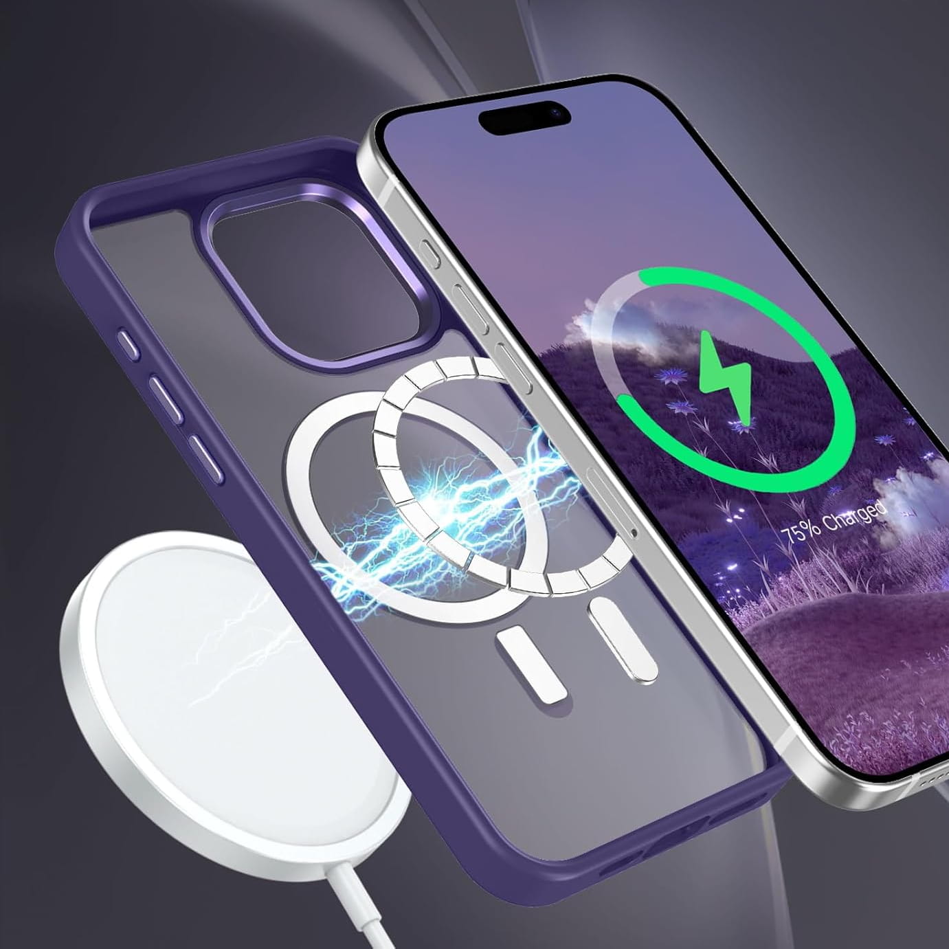 Ochronne etui składające się z dwóch materiałów: TPU (utwardzana guma) - ramka oraz twardego poliwęglanu, pokrytego warstwą antypoślizgową - matowe plecy. Zapewnia to świetną ochronę przy zachowaniu pełnej funkcjonalności. Etui umożliwia także współpracę z akcesoriami MAGSAFE.