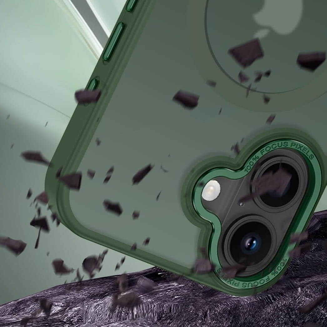 Ochronne etui składające się z dwóch materiałów: TPU (utwardzana guma) - ramka oraz twardego poliwęglanu, pokrytego warstwą antypoślizgową - matowe plecy. Zapewnia to świetną ochronę przy zachowaniu pełnej funkcjonalności. Etui umożliwia także współpracę z akcesoriami MAGSAFE.
