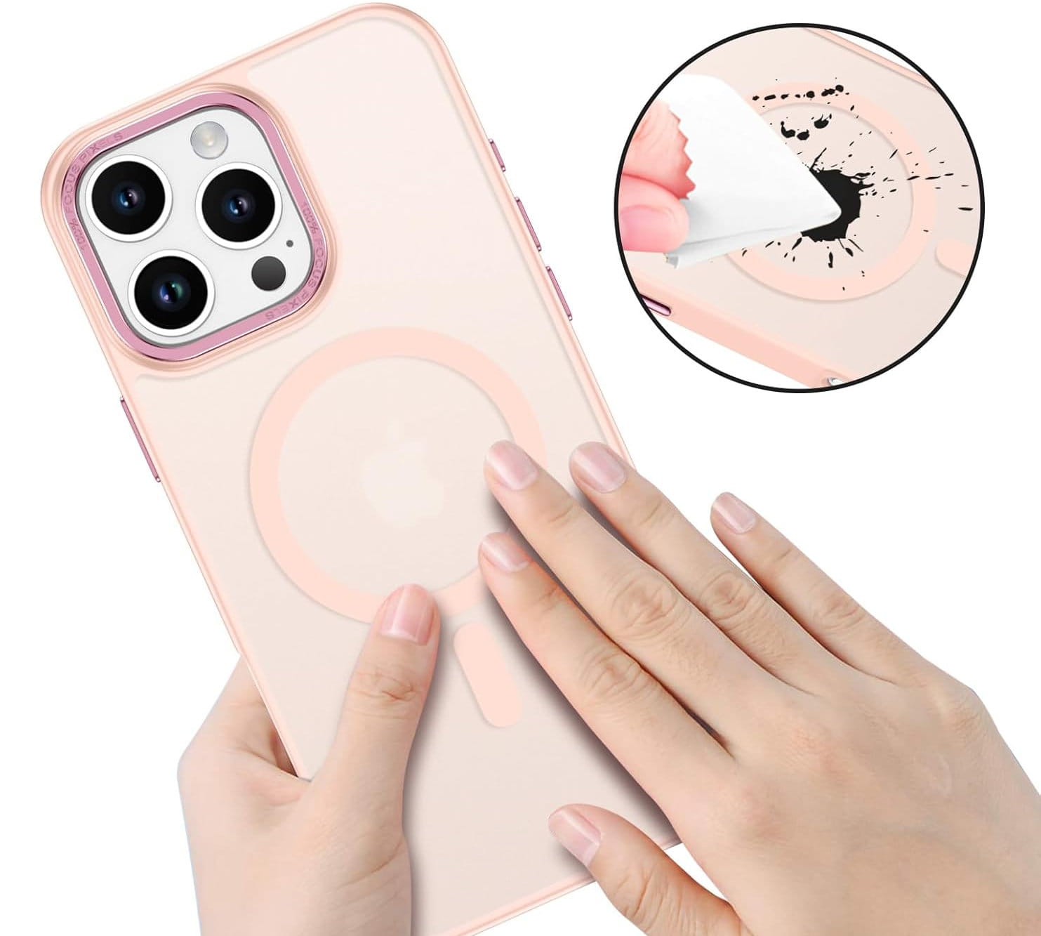 Ochronne etui składające się z dwóch materiałów: TPU (utwardzana guma) - ramka oraz twardego poliwęglanu, pokrytego warstwą antypoślizgową - matowe plecy. Zapewnia to świetną ochronę przy zachowaniu pełnej funkcjonalności. Etui umożliwia także współpracę z akcesoriami MAGSAFE.