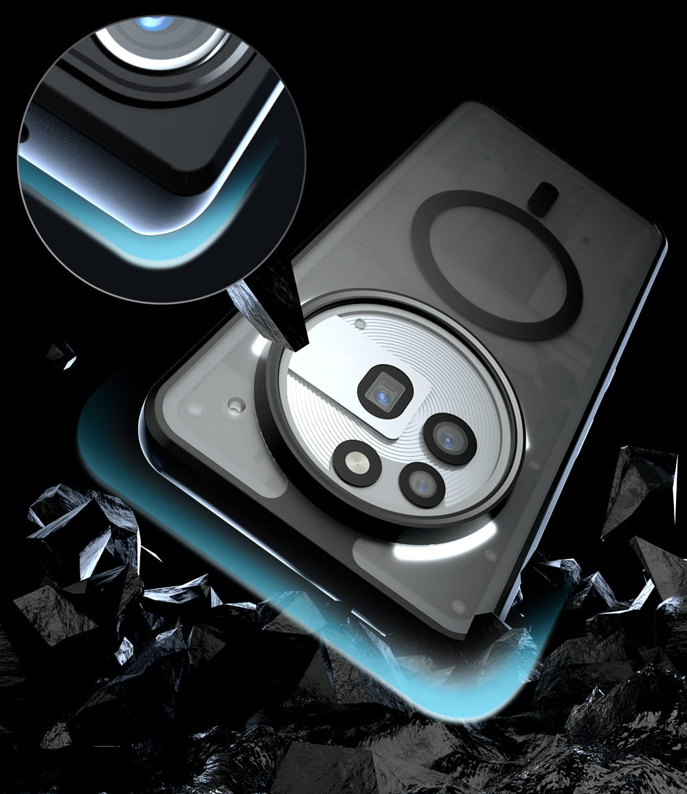 - Podwyższony rant wokół aparatu.