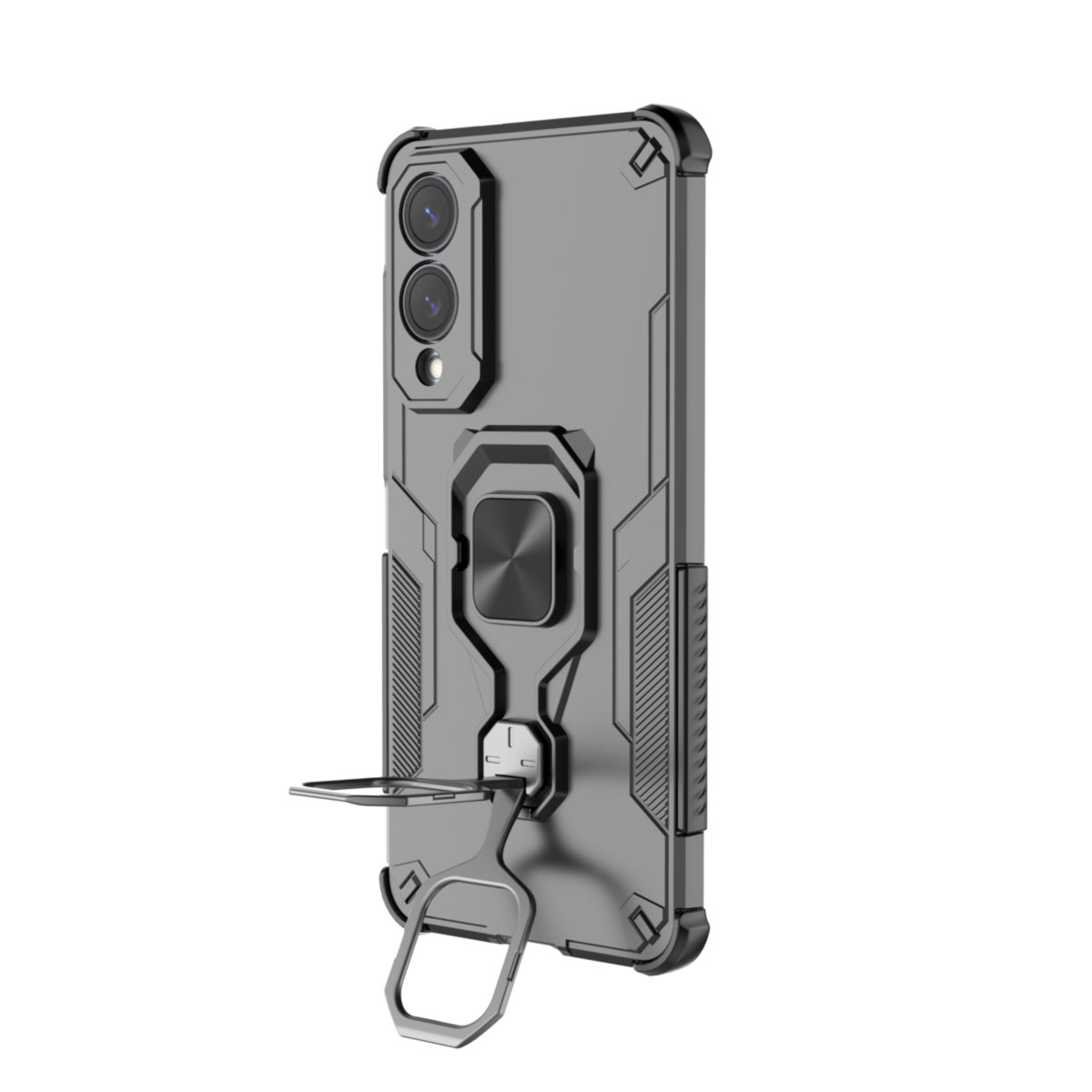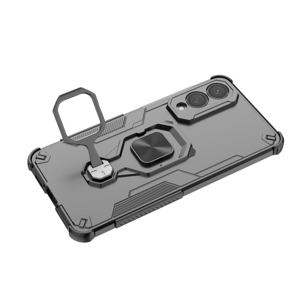 Ochronne etui składające się z dwóch materiałów: TPU (utwardzana guma) oraz twardego poliwęglanu, pokrytego warstwą antypoślizgową. Zapewnia to świetną ochronę przy zachowaniu pełnej funkcjonalności.