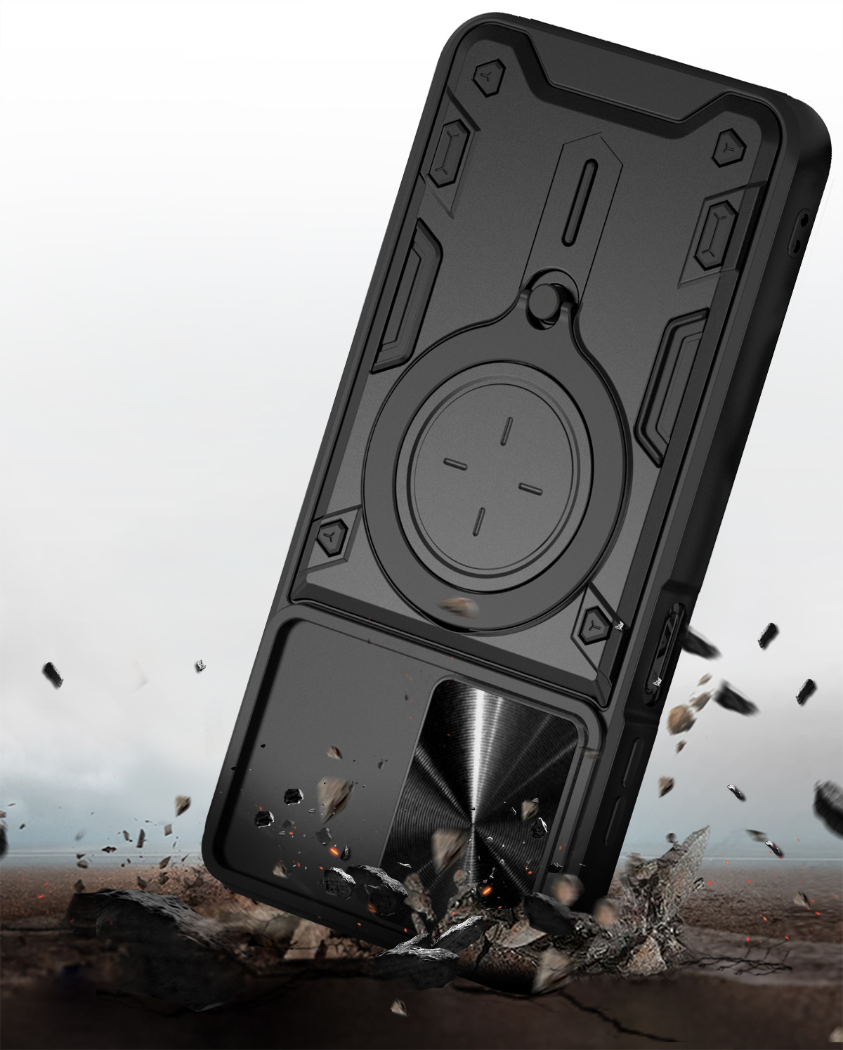 Etui zostało zaprojektowane z myślą o kompleksowej ochronie urządzenia w codziennym użytkowaniu oraz w trudniejszych warunkach. Dzięki zastosowaniu dwuwarstwowej konstrukcji – twardej zewnętrznej powłoki z poliwęglanu (PC) oraz wewnętrznej warstwy z elastycznego TPU – skutecznie zmniejsza ryzyko uszkodzeń telefonu. Struktura materiału, wbudowany ring oraz antypoślizgowe detale ograniczają ryzyko wyślizgnięcia się telefonu z dłoni.