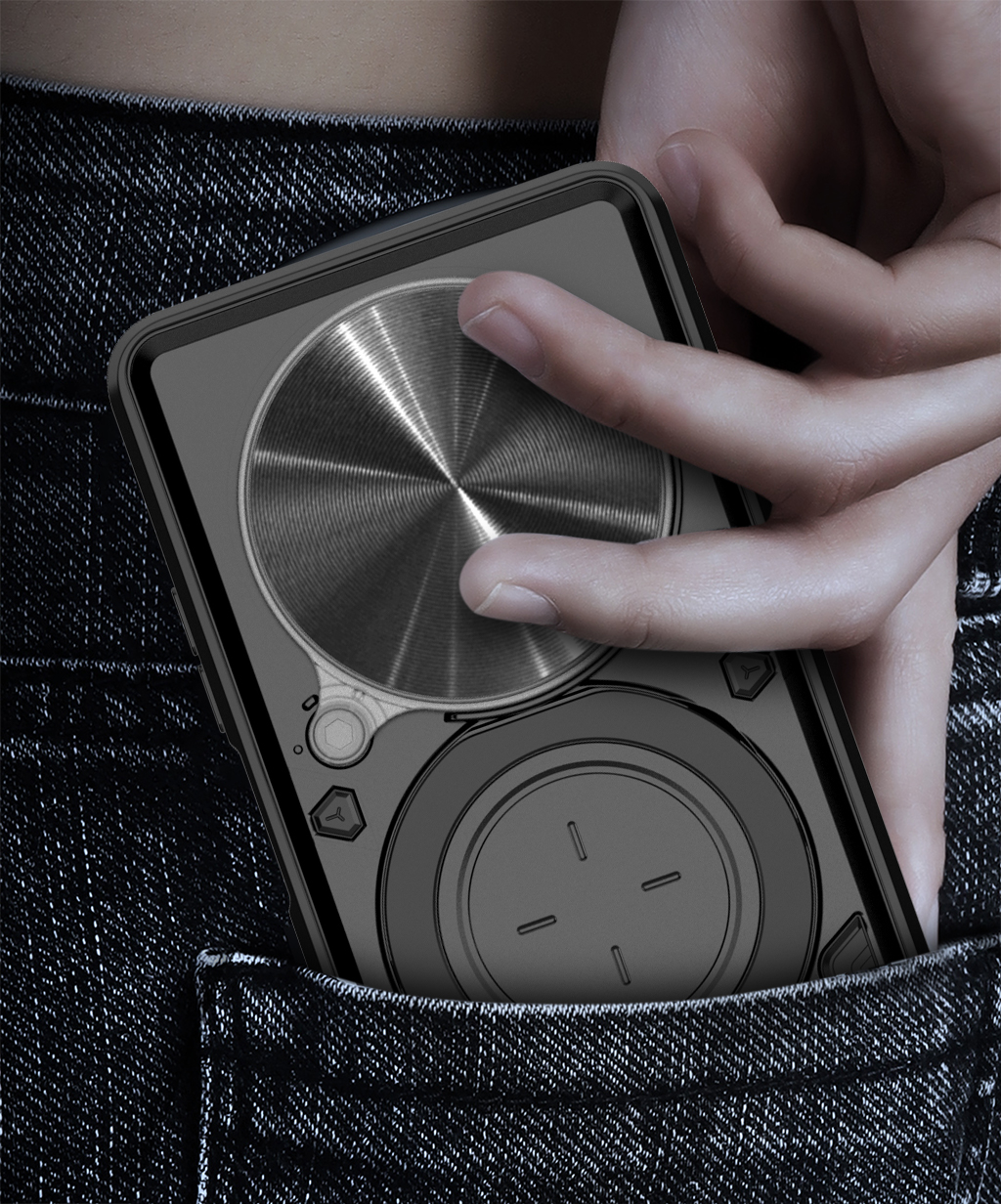 Etui zostało zaprojektowane w nowoczesnym stylu, który od razu przyciąga uwagę. Geometryczne linie i precyzyjne wykończenie nadają mu dynamiczny, niemal futurystyczny charakter. Metalowy ring na pleckach podkreśla technologiczny design i nadaje całości profesjonalnego wyglądu. Dwuwarstwowa konstrukcja dodatkowo wzmacnia poczucie solidności i nowoczesności.