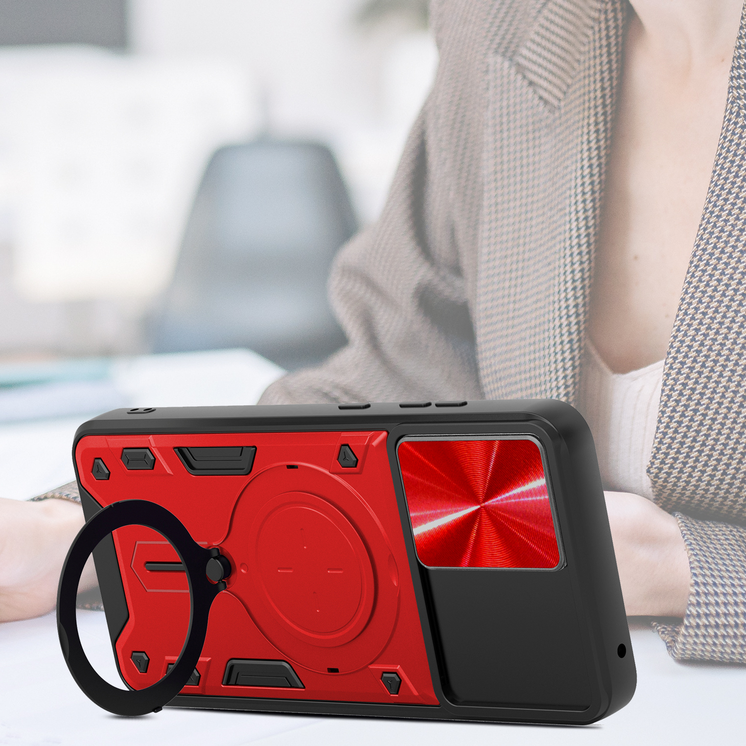 RINGSHIELD to etui, które zapewnia wysoki poziom ochrony połączony z nowoczesnym designem. Dwuwarstwowa konstrukcja z twardego poliwęglanu i elastycznego TPU zwiększa ochronę przed upadkami, zarysowaniami i codziennym zużyciem. Przesuwana osłona aparatu zabezpiecza soczewki przed uszkodzeniami i zabrudzeniami. Znajdujący się na pleckach metalowy ring z blaszką, pełni funkcję podstawki, uchwytu do wygodnego trzymania oraz mocowania do uchwytów magnetycznych w samochodzie. Zintegrowane przyciski chronią newralgiczne elementy telefonu, zachowując jednocześnie pełną funkcjonalność i wygodę użytkowania. Dodatkowo etui posiada dwie małe dziurki, umożliwiające przyczepienie smyczy lub zawieszki. To praktyczne rozwiązanie, które sprawdzi się zarówno na co dzień, jak i podczas wycieczek czy podróży.