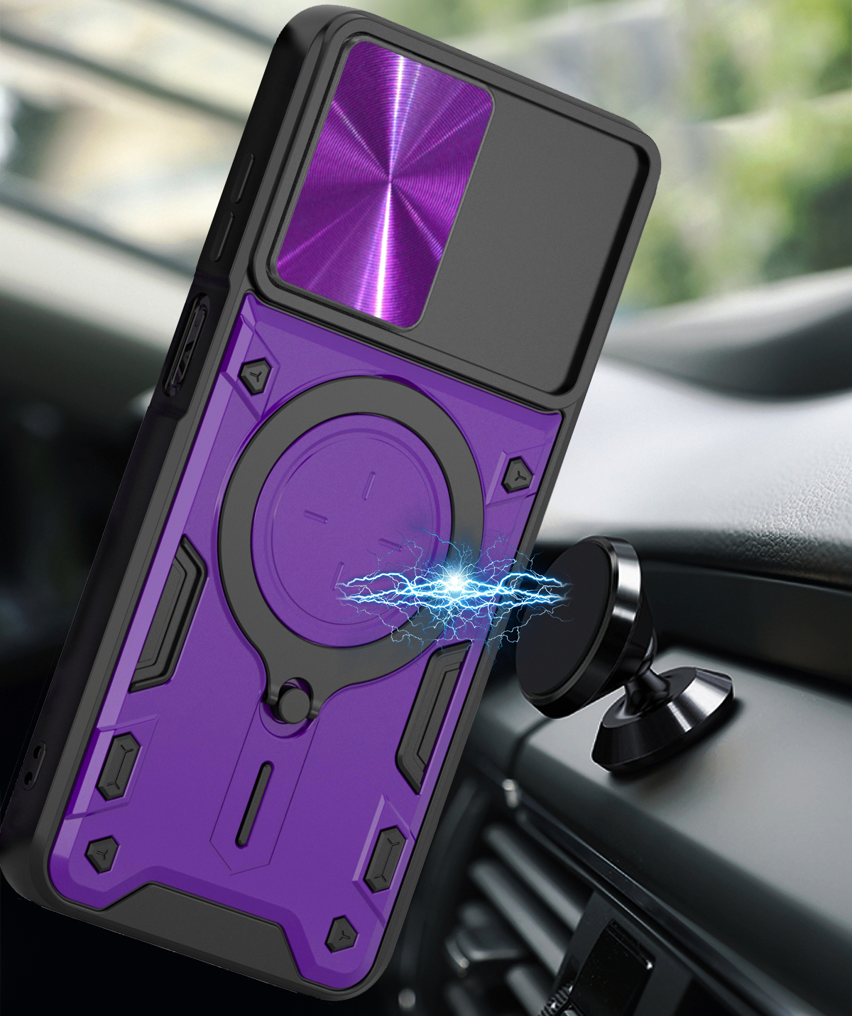 RINGSHIELD to etui, które zapewnia wysoki poziom ochrony połączony z nowoczesnym designem. Dwuwarstwowa konstrukcja z twardego poliwęglanu i elastycznego TPU zwiększa ochronę przed upadkami, zarysowaniami i codziennym zużyciem. Przesuwana osłona aparatu zabezpiecza soczewki przed uszkodzeniami i zabrudzeniami. Znajdujący się na pleckach metalowy ring z blaszką, pełni funkcję podstawki, uchwytu do wygodnego trzymania oraz mocowania do uchwytów magnetycznych w samochodzie. Zintegrowane przyciski chronią newralgiczne elementy telefonu, zachowując jednocześnie pełną funkcjonalność i wygodę użytkowania. Dodatkowo etui posiada dwie małe dziurki, umożliwiające przyczepienie smyczy lub zawieszki. To praktyczne rozwiązanie, które sprawdzi się zarówno na co dzień, jak i podczas wycieczek czy podróży.