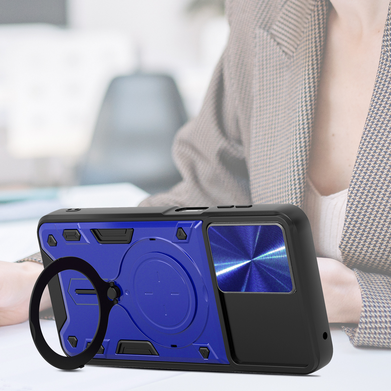 Etui zostało zaprojektowane z myślą o kompleksowej ochronie urządzenia w codziennym użytkowaniu oraz w trudniejszych warunkach. Dzięki zastosowaniu dwuwarstwowej konstrukcji – twardej zewnętrznej powłoki z poliwęglanu (PC) oraz wewnętrznej warstwy z elastycznego TPU – skutecznie zmniejsza ryzyko uszkodzeń telefonu. Struktura materiału, wbudowany ring oraz antypoślizgowe detale ograniczają ryzyko wyślizgnięcia się telefonu z dłoni.