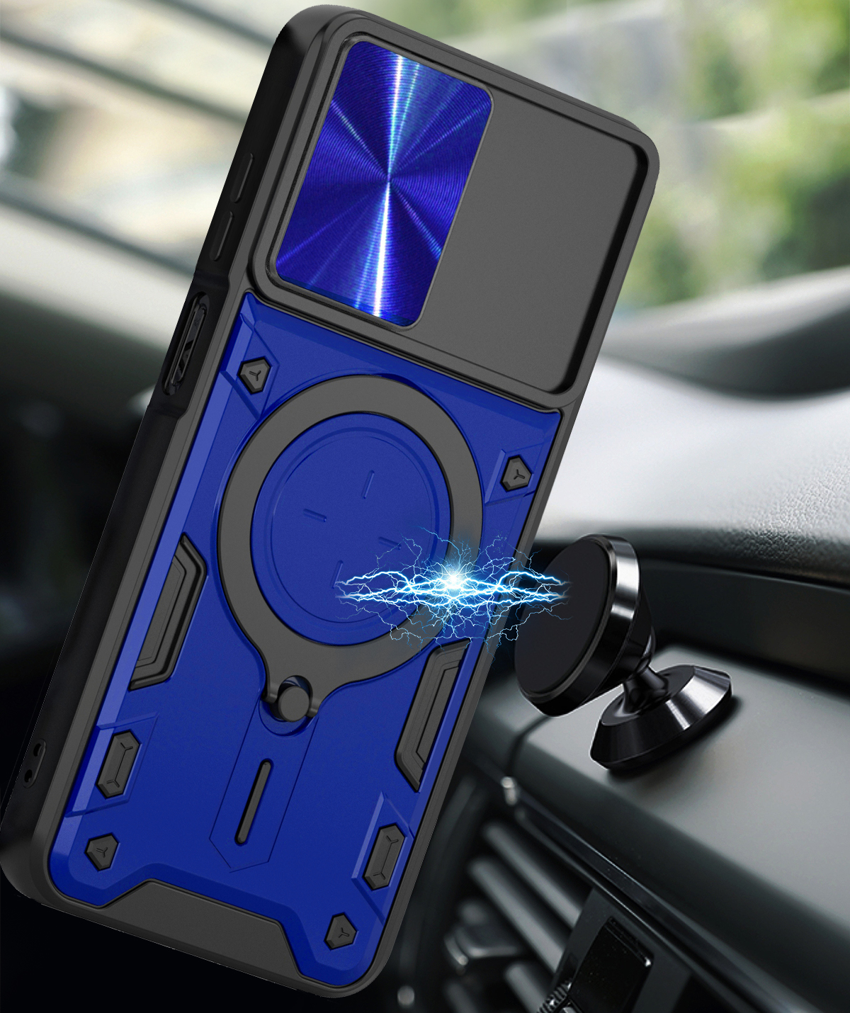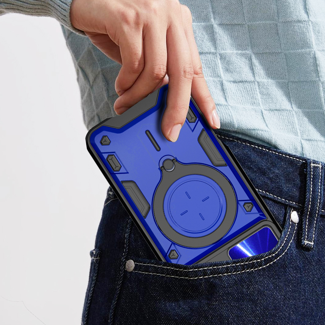 RINGSHIELD to etui, które zapewnia wysoki poziom ochrony połączony z nowoczesnym designem. Dwuwarstwowa konstrukcja z twardego poliwęglanu i elastycznego TPU zwiększa ochronę przed upadkami, zarysowaniami i codziennym zużyciem. Przesuwana osłona aparatu zabezpiecza soczewki przed uszkodzeniami i zabrudzeniami. Znajdujący się na pleckach metalowy ring z blaszką, pełni funkcję podstawki, uchwytu do wygodnego trzymania oraz mocowania do uchwytów magnetycznych w samochodzie. Zintegrowane przyciski chronią newralgiczne elementy telefonu, zachowując jednocześnie pełną funkcjonalność i wygodę użytkowania. Dodatkowo etui posiada dwie małe dziurki, umożliwiające przyczepienie smyczy lub zawieszki. To praktyczne rozwiązanie, które sprawdzi się zarówno na co dzień, jak i podczas wycieczek czy podróży.
