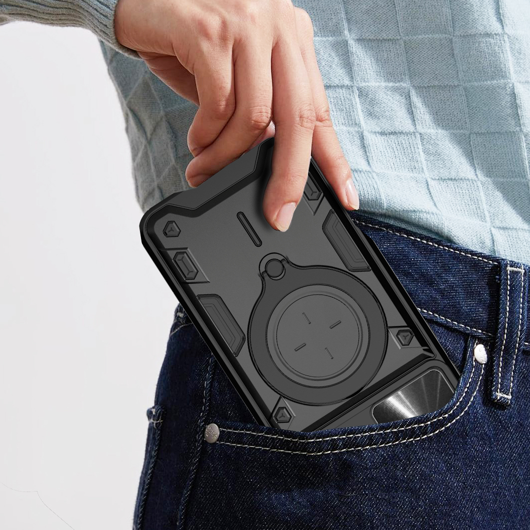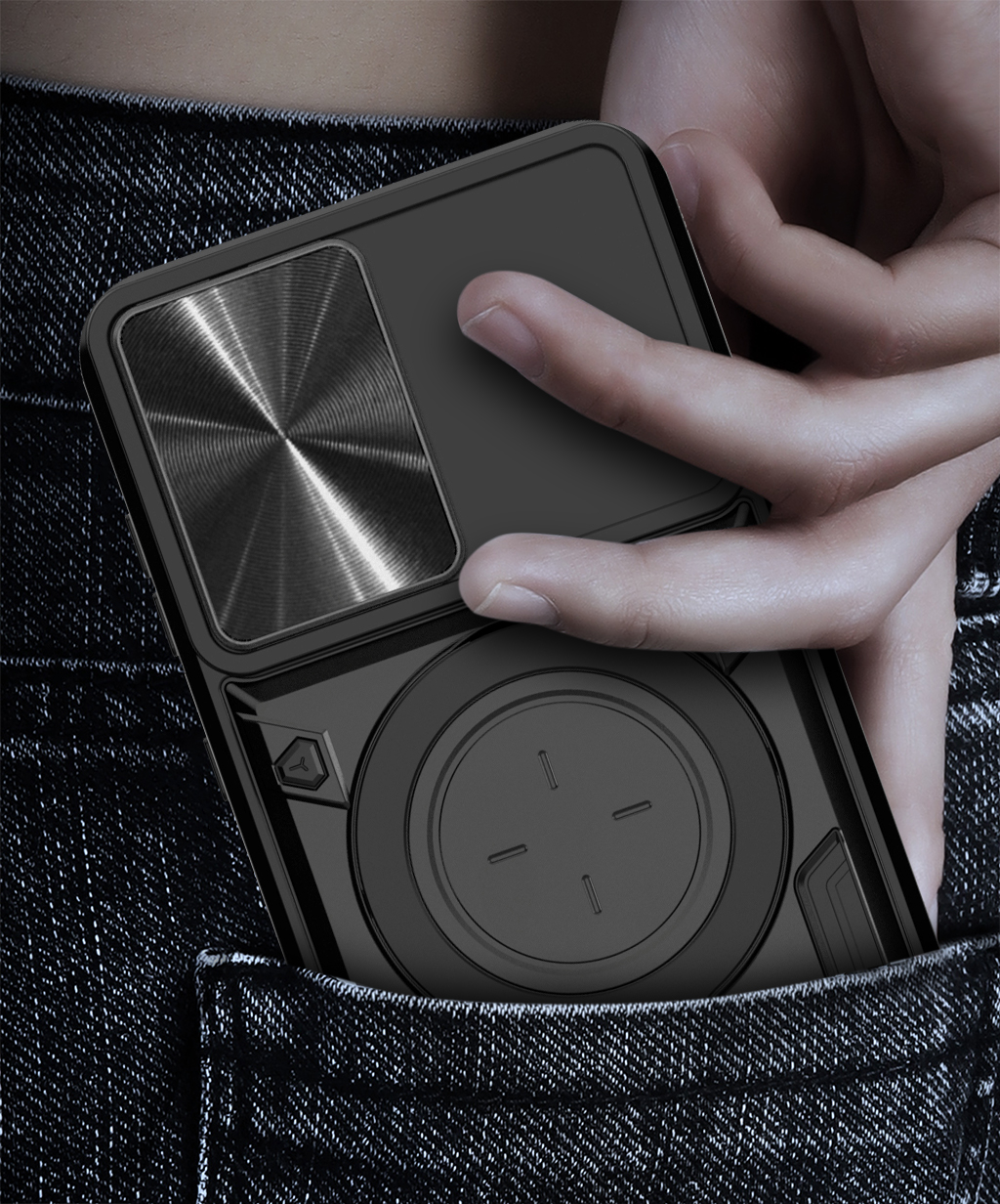 RINGSHIELD to etui, które zapewnia wysoki poziom ochrony połączony z nowoczesnym designem. Dwuwarstwowa konstrukcja z twardego poliwęglanu i elastycznego TPU zwiększa ochronę przed upadkami, zarysowaniami i codziennym zużyciem. Przesuwana osłona aparatu zabezpiecza soczewki przed uszkodzeniami i zabrudzeniami. Znajdujący się na pleckach metalowy ring z blaszką, pełni funkcję podstawki, uchwytu do wygodnego trzymania oraz mocowania do uchwytów magnetycznych w samochodzie. Zintegrowane przyciski chronią newralgiczne elementy telefonu, zachowując jednocześnie pełną funkcjonalność i wygodę użytkowania. Dodatkowo etui posiada dwie małe dziurki, umożliwiające przyczepienie smyczy lub zawieszki. To praktyczne rozwiązanie, które sprawdzi się zarówno na co dzień, jak i podczas wycieczek czy podróży.