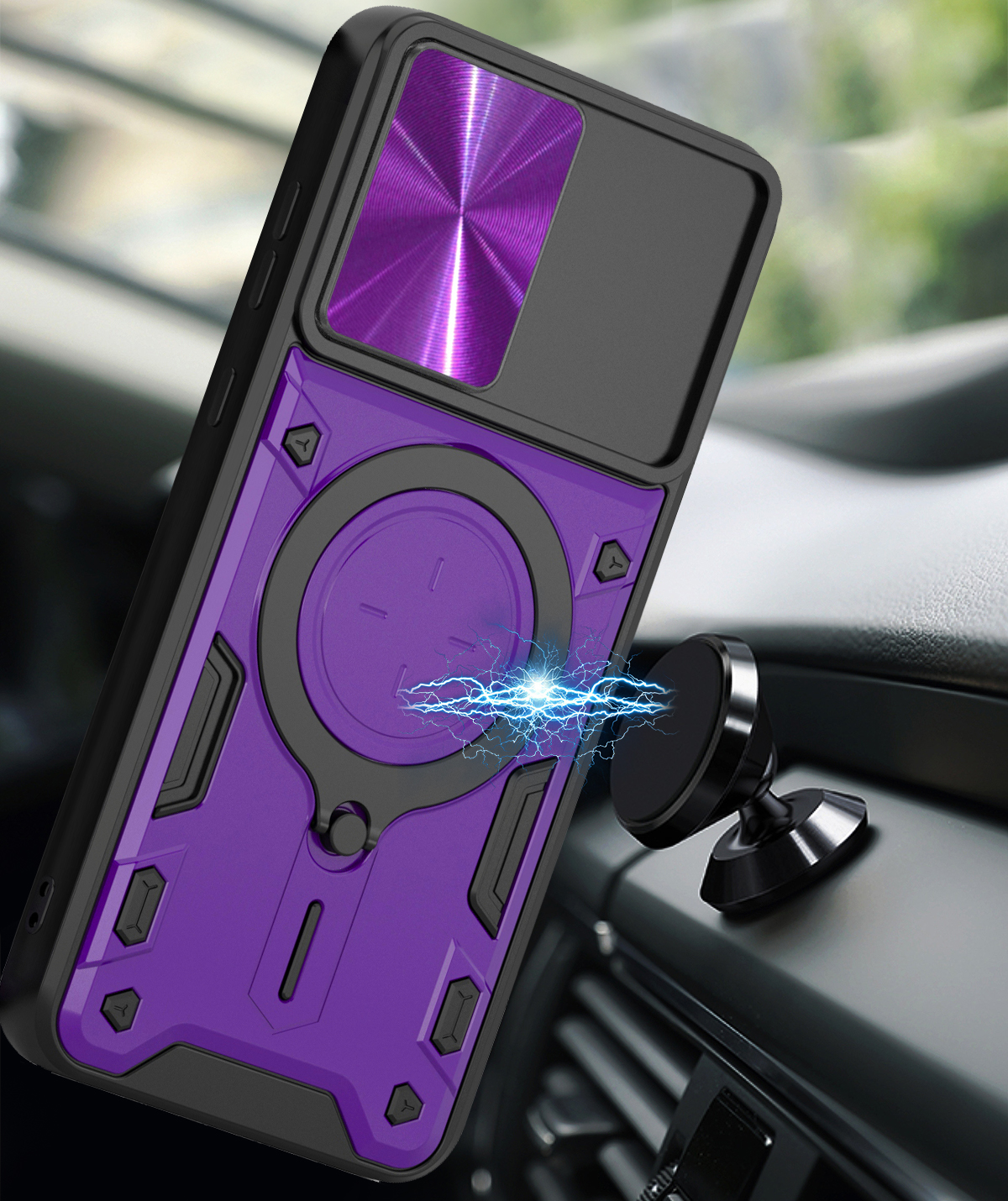 RINGSHIELD to etui, które zapewnia wysoki poziom ochrony połączony z nowoczesnym designem. Dwuwarstwowa konstrukcja z twardego poliwęglanu i elastycznego TPU zwiększa ochronę przed upadkami, zarysowaniami i codziennym zużyciem. Przesuwana osłona aparatu zabezpiecza soczewki przed uszkodzeniami i zabrudzeniami. Znajdujący się na pleckach metalowy ring z blaszką, pełni funkcję podstawki, uchwytu do wygodnego trzymania oraz mocowania do uchwytów magnetycznych w samochodzie. Zintegrowane przyciski chronią newralgiczne elementy telefonu, zachowując jednocześnie pełną funkcjonalność i wygodę użytkowania. Dodatkowo etui posiada dwie małe dziurki, umożliwiające przyczepienie smyczy lub zawieszki. To praktyczne rozwiązanie, które sprawdzi się zarówno na co dzień, jak i podczas wycieczek czy podróży.