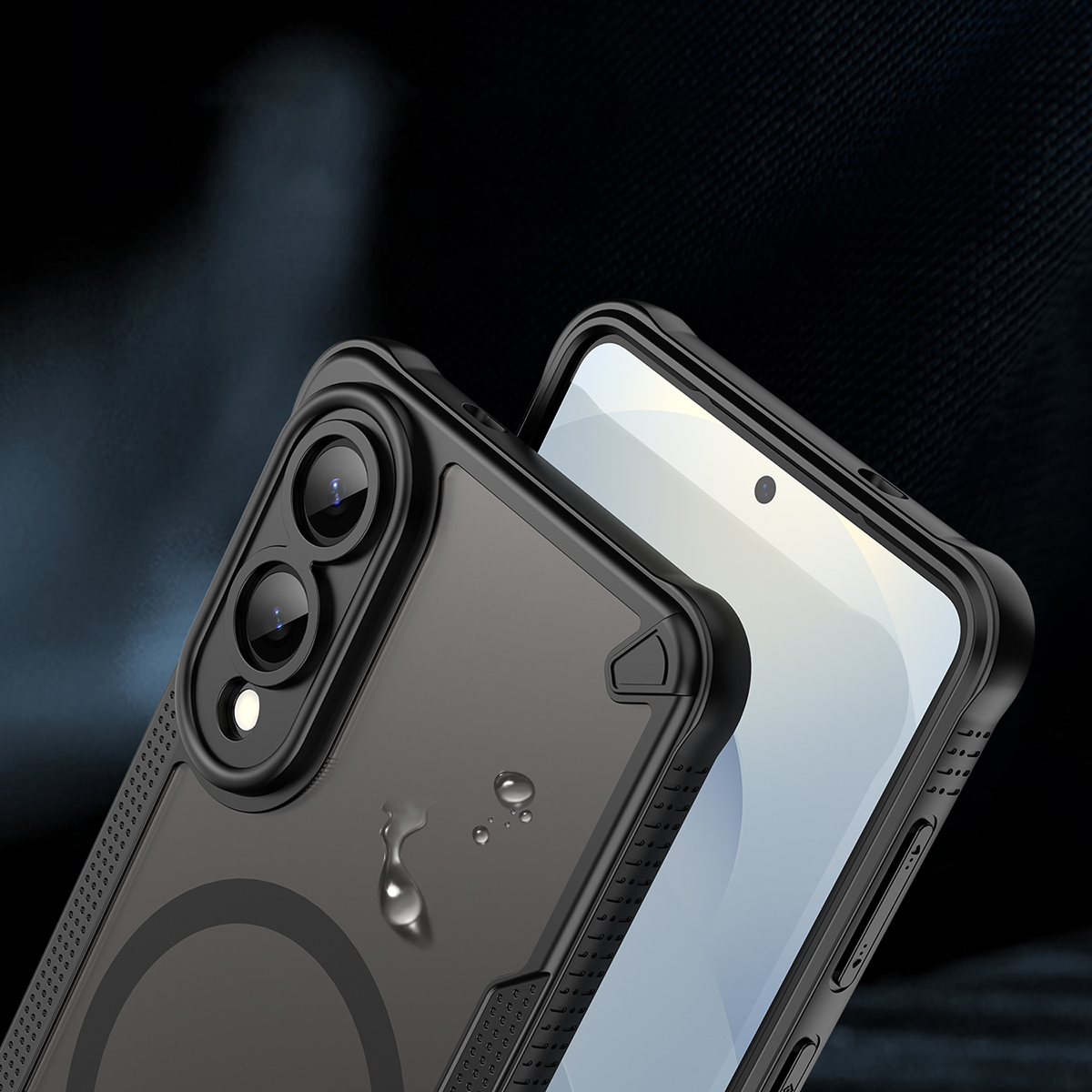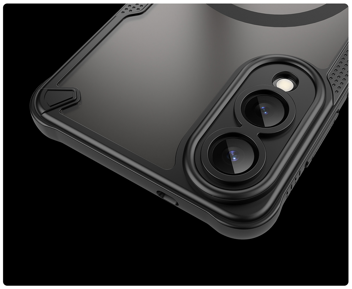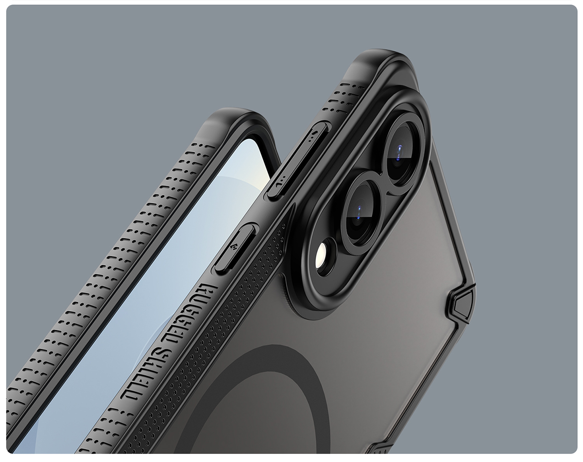 Etui RUGGED SHIELD to nowoczesne akcesorium, które łączy funkcjonalność z estetyką. Wykonanie z materiału o półprzezroczystym wykończeniu dodaje telefonowi charakteru. Matowa tekstura zmniejsza refleksy świetlne, nadając elegancki i profesjonalny wygląd. Choć stosunkowo cienkie, zapewnia solidną ochronę przed upadkami i zarysowaniami, dzięki zastosowaniu elastycznego materiału, który amortyzuje wstrząsy.