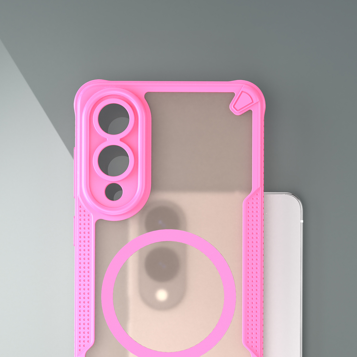Wbudowany magnetyczny pierścień MagSafe umożliwia szybkie i pewne mocowanie akcesoriów kompatybilnych z tą technologią, takich jak ładowarki (działa tylko z telefonami obsługującymi ładowanie indukcyjne), portfele czy uchwyty samochodowe. Magnesy wbudowane w etui są odpowiednio rozmieszczone, by zapewnić idealne dopasowanie i stabilność montowanych dodatków. Pierścień MagSafe nie wpływa na codzienne użytkowanie, a same akcesoria można łatwo i szybko doczepić oraz zdemontować.