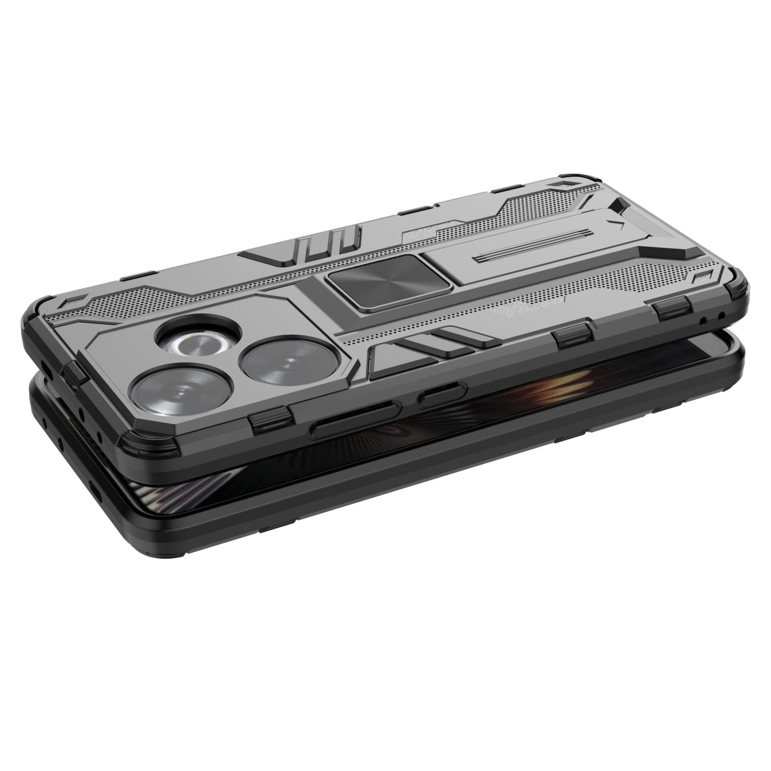 Ochronne etui składające się z dwóch materiałów: TPU (utwardzana guma) oraz twardego poliwęglanu. Zapewnia to świetną ochronę przy zachowaniu pełnej funkcjonalności.