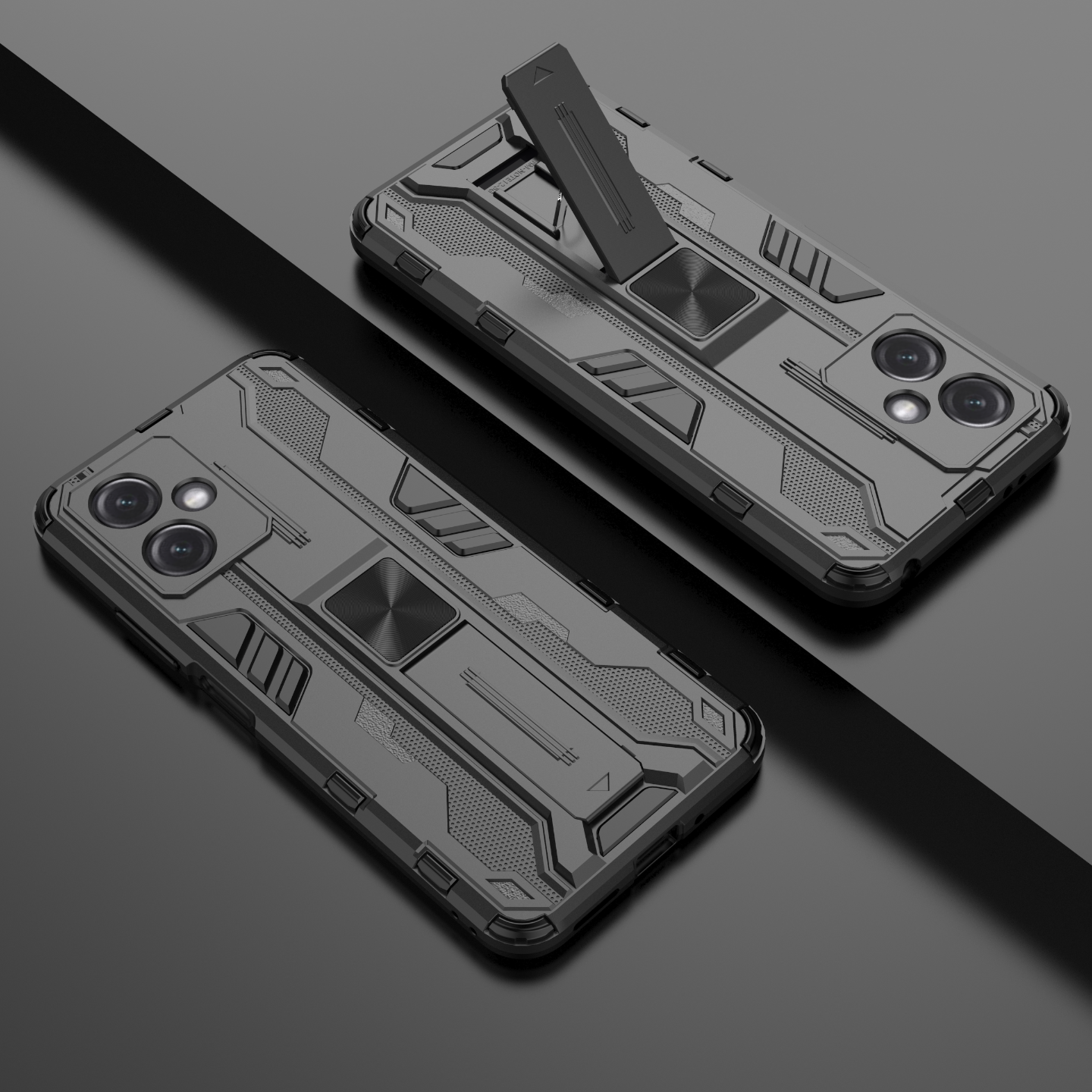 Ochronne etui składające się z dwóch materiałów: TPU (utwardzana guma) oraz twardego poliwęglanu. Zapewnia to świetną ochronę przy zachowaniu pełnej funkcjonalności.