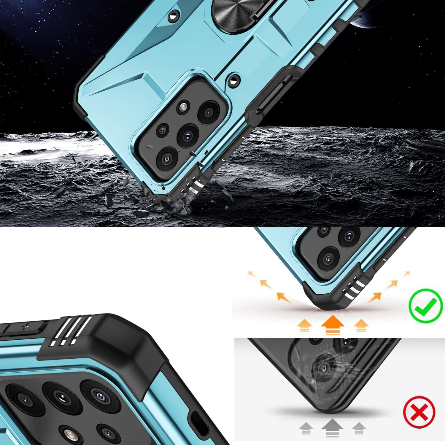 Ochronne etui składające się z dwóch materiałów: TPU (utwardzana guma) oraz twardego poliwęglanu, pokrytego warstwą antypoślizgową. Zapewnia to świetną ochronę przy zachowaniu pełnej funkcjonalności.