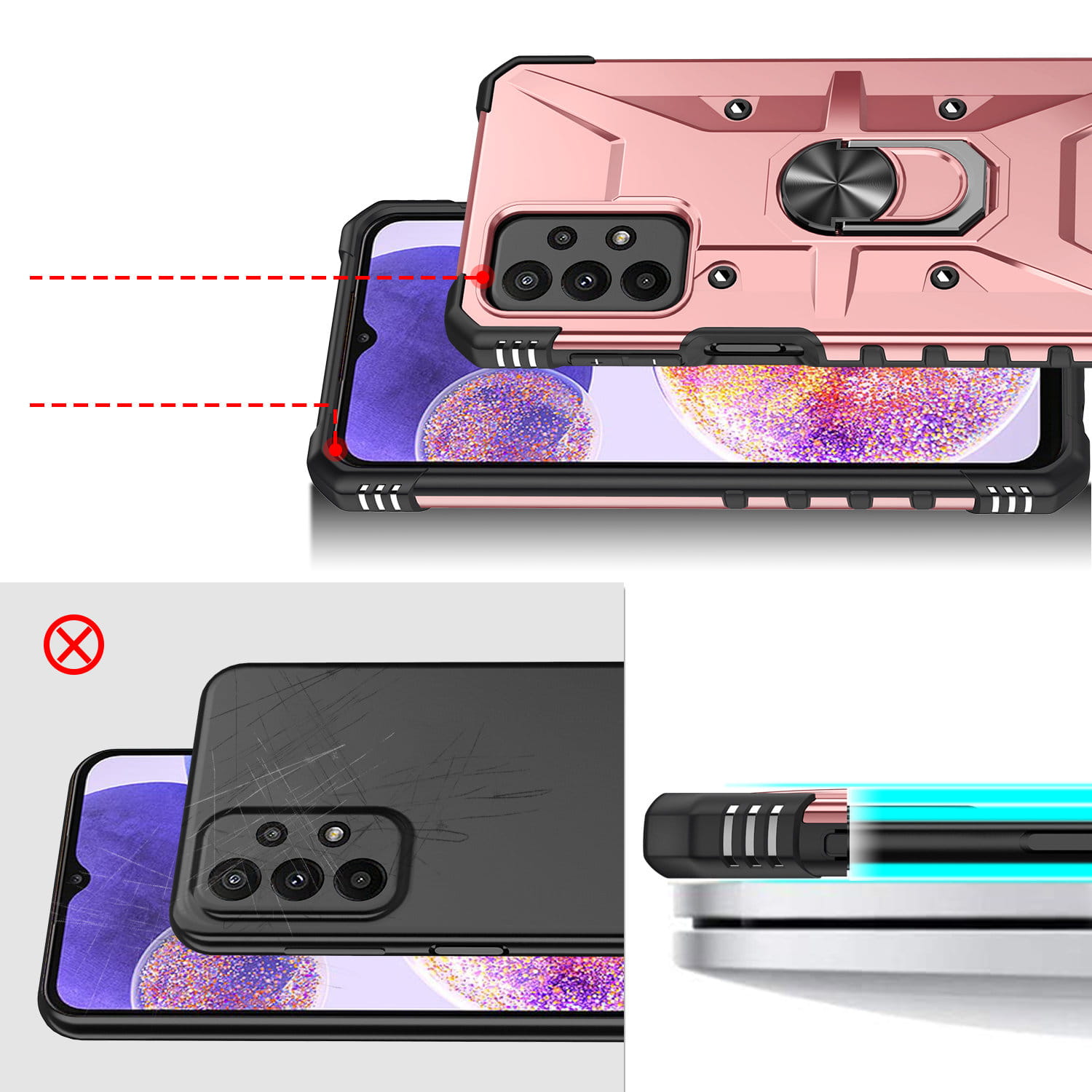 Ochronne etui składające się z dwóch materiałów: TPU (utwardzana guma) oraz twardego poliwęglanu, pokrytego warstwą antypoślizgową. Zapewnia to świetną ochronę przy zachowaniu pełnej funkcjonalności.