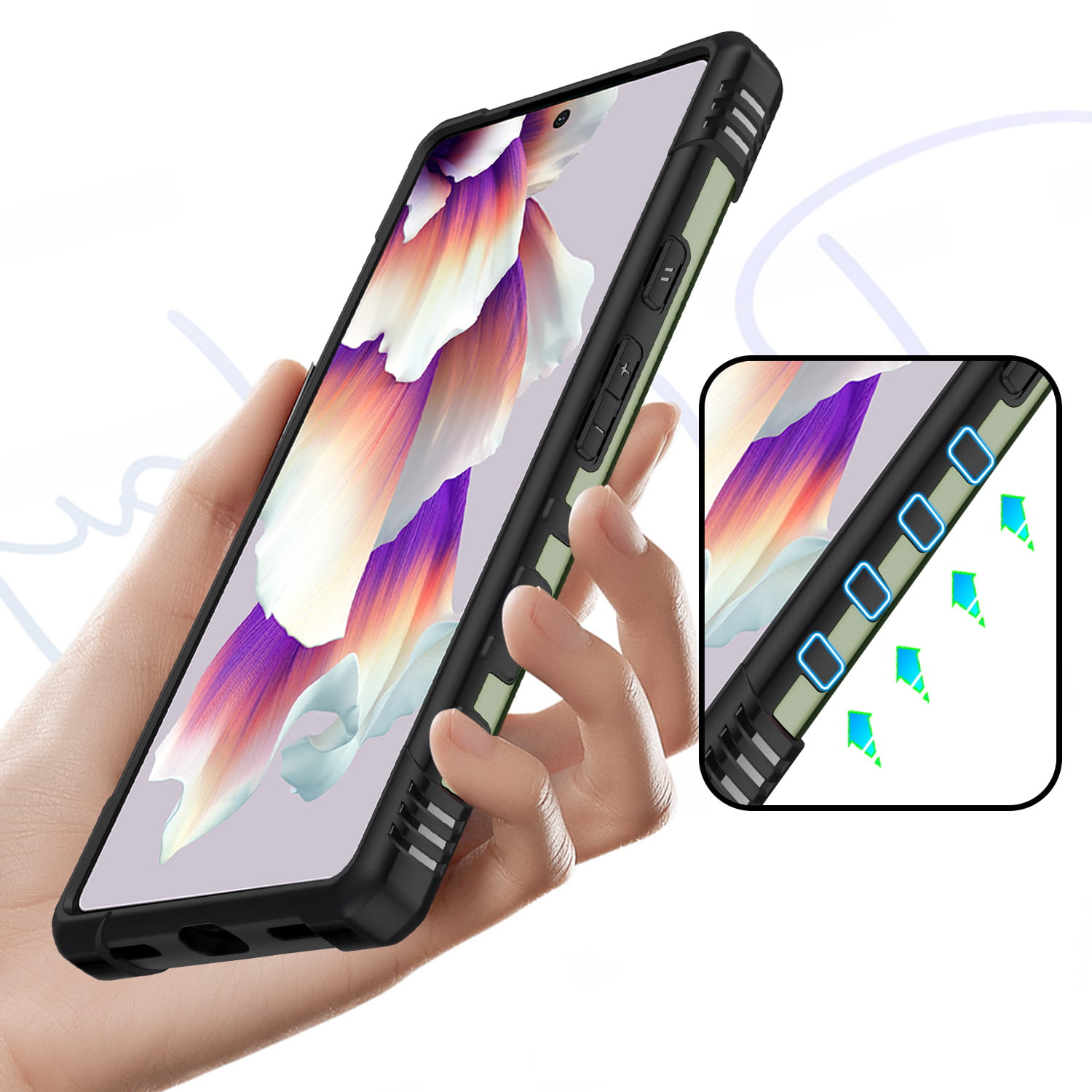Ochronne etui składające się z dwóch materiałów: TPU (utwardzana guma) oraz twardego poliwęglanu, pokrytego warstwą antypoślizgową. Zapewnia to świetną ochronę przy zachowaniu pełnej funkcjonalności.