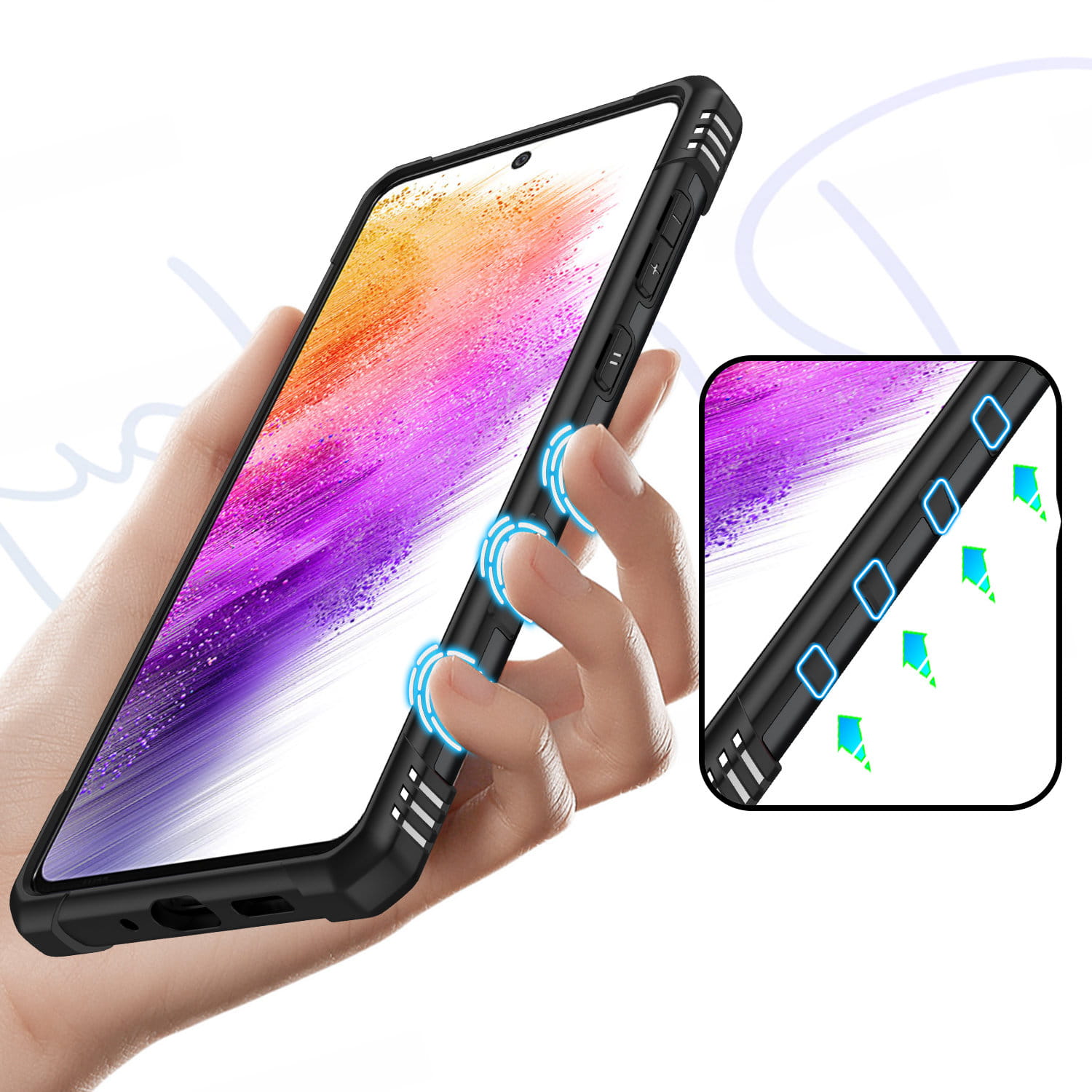 Ochronne etui składające się z dwóch materiałów: TPU (utwardzana guma) oraz twardego poliwęglanu, pokrytego warstwą antypoślizgową. Zapewnia to świetną ochronę przy zachowaniu pełnej funkcjonalności.