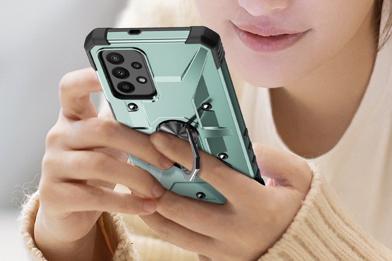 Ochronne etui składające się z dwóch materiałów: TPU (utwardzana guma) oraz twardego poliwęglanu, pokrytego warstwą antypoślizgową. Zapewnia to świetną ochronę przy zachowaniu pełnej funkcjonalności.