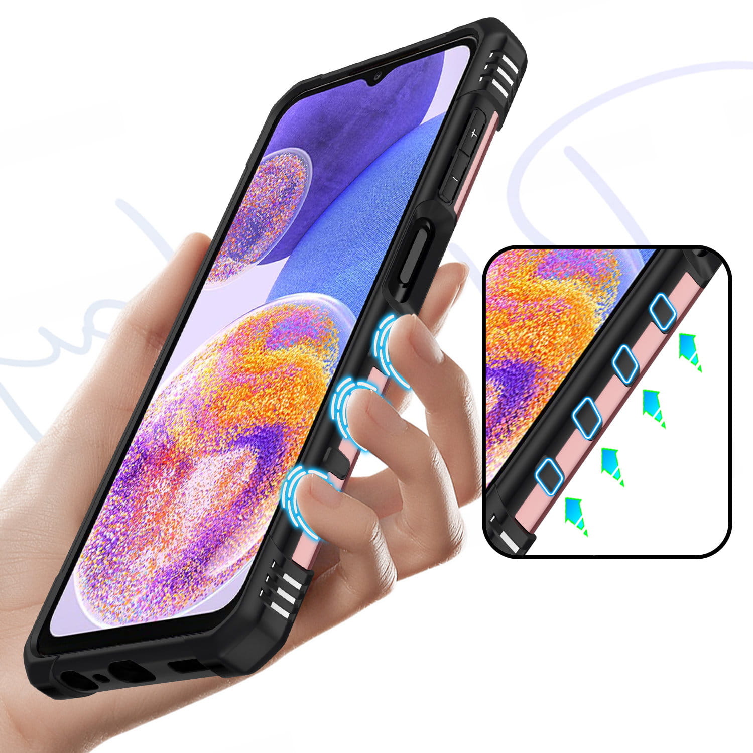 Ochronne etui składające się z dwóch materiałów: TPU (utwardzana guma) oraz twardego poliwęglanu, pokrytego warstwą antypoślizgową. Zapewnia to świetną ochronę przy zachowaniu pełnej funkcjonalności.