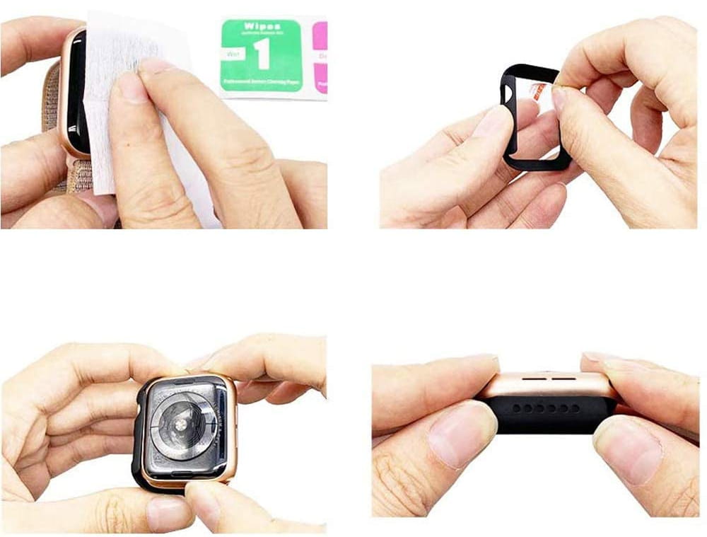 - Zacznij zakładanie etui od koronki zegarka.
