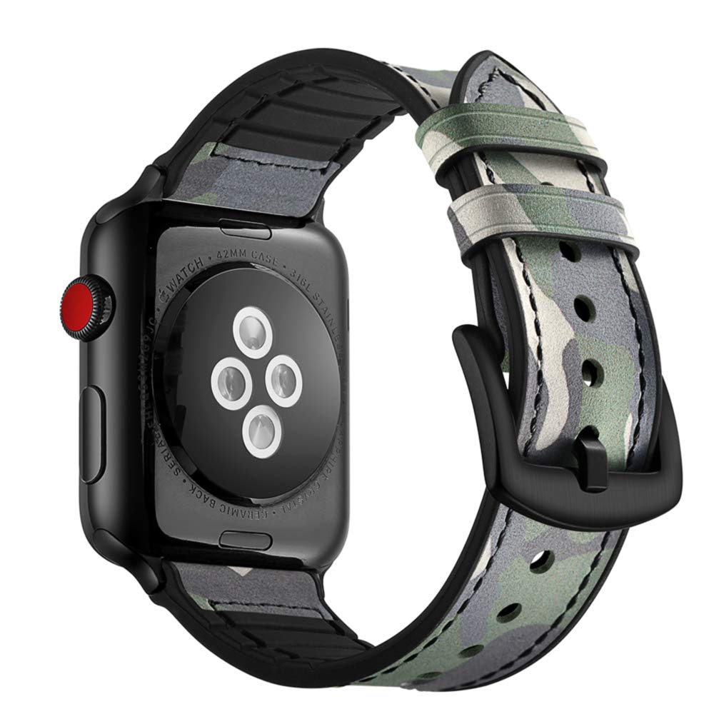 Pasek Exoguard Leather - Apple Watch 42 / 44 / 45 - Military Green